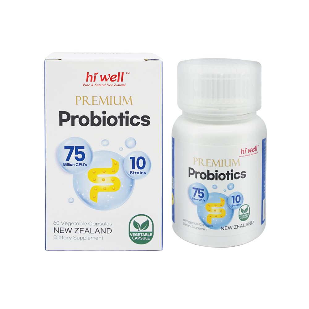 Hi Well Premium Probiotics 75 Billion is manufactured from the pure and clean environments of New Zealand. Each capsule contains over 75 billion Lactobacillus and Bifidobacterium both of which can survive in the stomach and reach the gut. Hi Well Premium Probiotics 75 Billion can be taken at all ages and can be taken mixed with Yoghurt.
