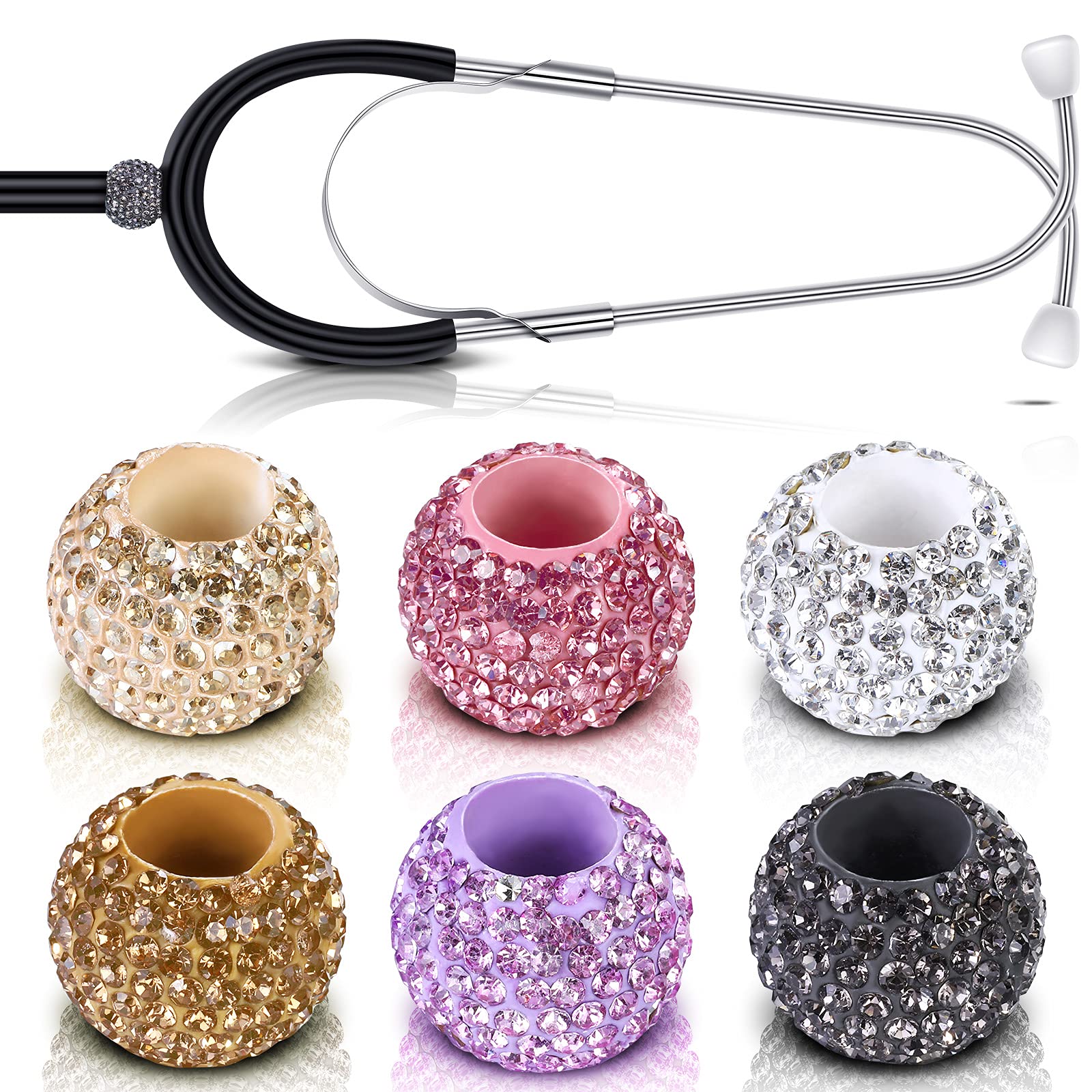 Hicarer 6 Pieces Bling Crystal Stethoscope Charms Nurse Accessories for Work Nurse Vet Crystal Stethoscope Decorations Multiple Colors Purple White Gold Pink Black Yellow