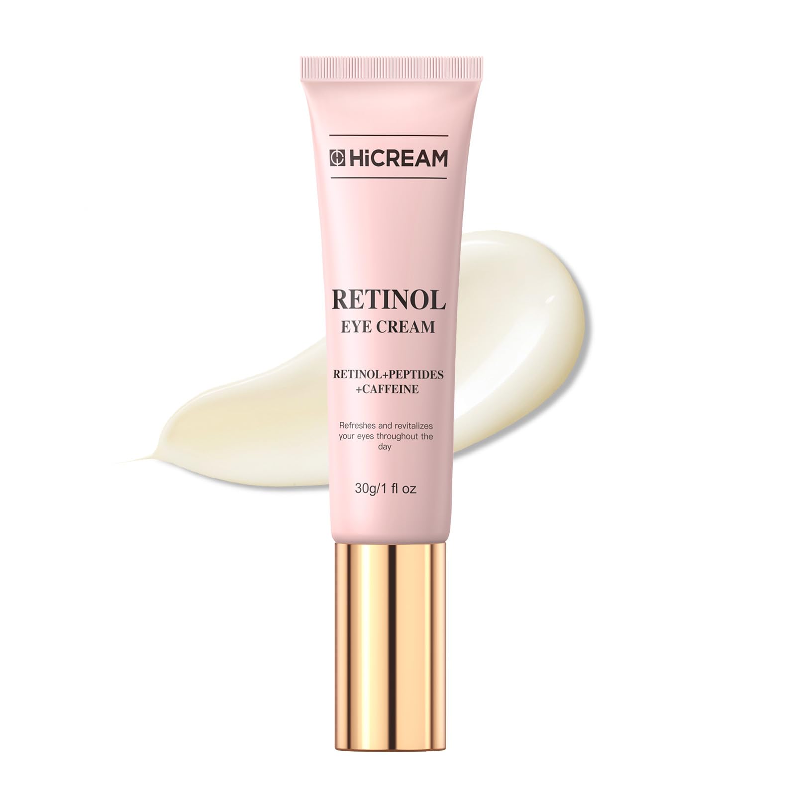 Hicream Eye Cream for Fine Lines Wrinkles Dark Circles & Puffiness Anti-Aging Under Eye Cream with Retinol & Caffeine Hydrating & Smoothing Gentle Formula for All Skin Types 1 fl. oz