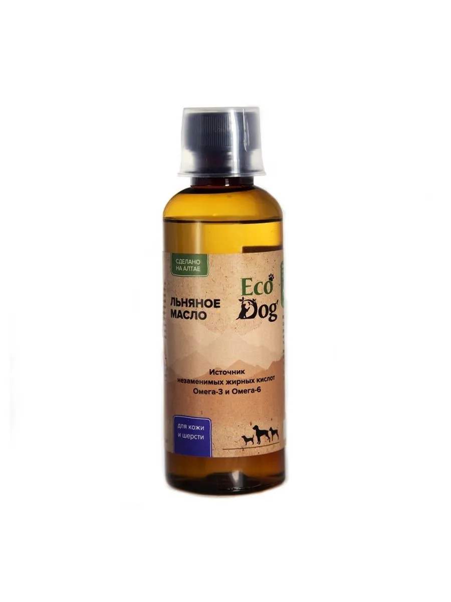 Omega-3 and Omega-6: fatty acids in the diet of dogs Essential fatty acids Omega-3, Omega-6, a number of polyunsaturated components that are NOT synthesized in the animal's body and must be supplied with special supplements and food. Their intake in sufficient quantities: - Provides shine and growth of thick coat; - Strengthens claws and prevents their delamination; - Helps fight inflammatory processes in the joints; - Improves the functioning of the gastrointestinal tract; - Normalizes the processes of the nervous system; - Helps enhance vision, hearing and smell; One of the main sources of Omega today is EcoDog Flaxseed Oil - obtained by cold pressing from the seeds of oil flax grown in Altai. The rich composition of trace elements and the high content of Omega 3, 6 will allow your pet to grow healthy and active. A few tips for buying, using, and storing flaxseed oil: When purchasing oil, choose bottles made of dark material (with minimal light transmission) - this product retains the maximum amount of beneficial properties; Choose small volumes. This is convenient, despite the desire to stock up for future use, since the product has a tendency (like any fat) to oxidize when exposed to oxygen; You should only buy: Unrefined, cold-pressed flaxseed oil; After opening, the bottle of flaxseed oil must be stored in the refrigerator. The optimal storage location is the shelf in the refrigerator door; A small dark sediment may be present at the bottom of the bottle of natural flaxseed oil. Therefore, it is worth shaking it before use; - Flaxseed oil should not be heated or added to hot food. Heat treatment leads to the destruction of beneficial substances, so a cold product will be much more beneficial.