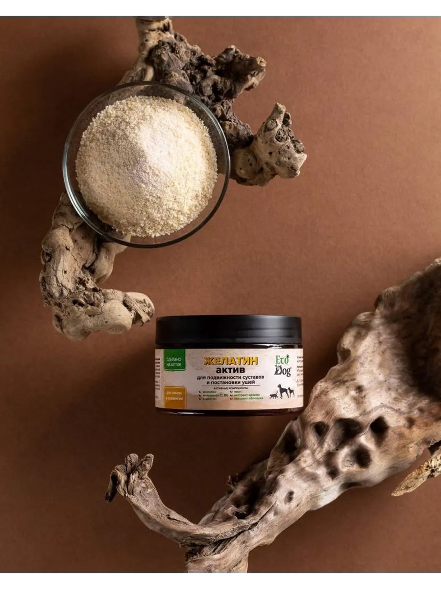 Чистый гидролизат желатина высокой биологической ценности,обогащенный L цистином, витаминами В6, С, метилсульфонилметаном , а так же экстрактами Аронии ( источник рутина ), Облепихи ( источник каротиноидов ). Желатин Актив необходим животному как в период активного роста и развития опорно-двигательной системы, так и пожилым собакам для поддержания двигательной функции.Обеспечивает достаточное питание суставных хрящей, связок и сухожилий. Способствует подвижности суставов. Идеальное средство для постановки ушей у собак. Направленная на поддержание здоровья суставов Вашего питомца. Недостаток коллагена в организме питомца приводит к нарушением опорно двигательного аппарата. В зоне повышенного риска находятся собаки крупных пород, спортивные, питомцы пожилого возраста и щенки. Желатин Актив: Поддерживает функциональность суставов; Обеспечивает достаточное питание суставных хрящей, связок и сухожилий; Снижает хромоту и скованность движений питомца; Способствует правильному развитию опорно двигательного аппарата щенка в период активного роста. Добавка благотворно влияет на двигательную функцию, гибкость, подвижность суставов В составе: чистый гидролизат желатина высокой биологической ценности, обогащенный L цистином, витаминами и экстрактами ягод. Масса нетто: 150 300 гр