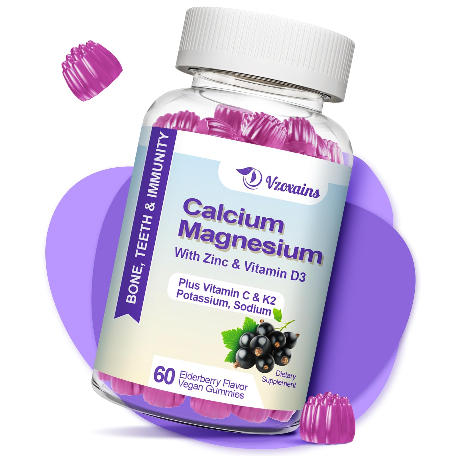 Quality Guaranteed: Vzoxians Calcium Magnesium Zinc D3 Gummies Supplement are produced in the USA in GMP-certified facilities to meet the strict GMP standards. Using only natural ingredients as you deserve high quality and worry free supplements. We are confident you will love vzoxians calcium supplement with magnesium glycinate gummies. If you're not thrilled with our product, please contact us in time!. Sugar Free Elderberry Flavor Tasty Gummy: You will enjoy taking our calcium magnesium potassium supplement with the delicious natural elderberry flavor. Our formula is Non-GMO, Gluten-Free, Gelatin-Free, and contains No artificial colors, flavors, or preservatives, Vegan-Friendly. Highly absorbable for your body and has maximum health benefits. Perfect for adults and kids. (Kids ages 4-12 take 1 gummy per serving, ages 12 take 2.). Stronger B0ne For Adults Kids: As we age, our b0nes deteriorate, making them weak and fragile. Just 2 Vegan Sugar-Free Calcium Gummies a day bring you calcium, magnesium, zinc with vitamin d3,K2 which are all essential to support healthy b0ne building and help maintain bone density. These nutrients garnered popularity among those looking to build b0ne health. 8 in1 Natural Formula with Multiple Benefits: Our calcium magnesium zinc with vitamin D3 gummies are a highly potent combination of beneficial ingredients, including calcium, magnesium, zinc, vitamin d3, K2, vitamin C, potassium and sodium, which work together to maintain a healthy immune system and support b0ne and tooth health, support digestive system, supporting memory and cognitive function and supports muscles. Calcium Magnesium Zinc Gummies: If you are not a fan of pills, So these delicious active calcium gummies with potassium magnesium will make it more pleasant and convenient. Great tasting too! Expertly formulated with no aftertaste, our elderberry flavored gummies are an easy way to take calcium, magnesium, zinc, and other vitamins and minerals. High bioavailability and good absorption.