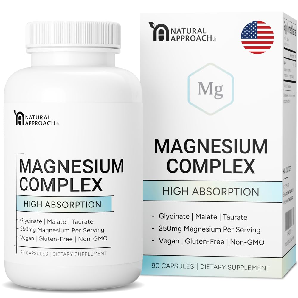 natural approach high absorption magnesium complex on nightstand. Better magnesium. Better nights.