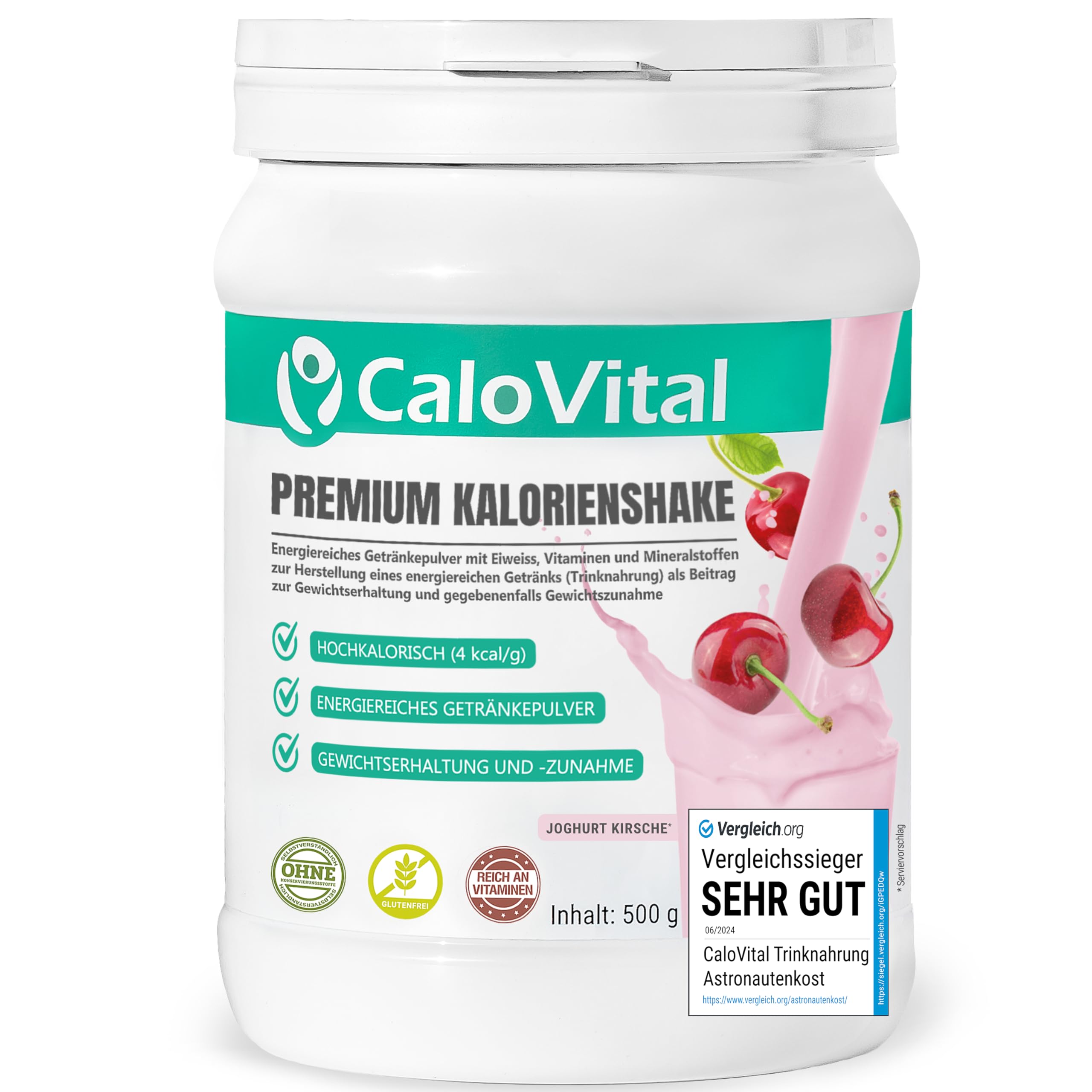 WHAT'S SPECIAL ABOUT Calovital? A highly caloric powdered food with 1.5 kcal ml (using whole milk with 3.5 fat). The energy distribution of fat, carbohydrates, and proteins corresponds to the 2013 DA-CH reference values for residential senior facilities, specifically for seniors over 65 (150 ml whole milk with 3.5 fat 50 g powder). Tasty and easily soluble in milk and meals, it can be used as a weight-gain shake. Ideal for enriching calories during recovery, for healthy growth, or to optimally supply the body with all the nutrients it needs as it ages. This build-up food provides the body with energy and aids regeneration. This highly caloric drink contains a variety of minerals, vitamins, proteins, and other nutrients. Who is it for? Athletes with high energy needs and those with increased energy requirements to build their bodies, for whom nutrients from regular food are no longer sufficient, or who have difficulty absorbing sufficient food. CaloVital is also suitable for people who want to strengthen their bodies through intensive exercise and a high-calorie diet. CaloVital is suitable for, among other things: - Inappetence - Increased nutrient requirements during convalescence - Infirmity or age-related nutritional deficiencies - Generally increased energy and nutrient requirements - Weight loss - Gluten intolerance - Difficulty swallowing - Underweight - And much more. For all other applications, please consult your doctor or pharmacist. Ensure good product quality, for example, by using powdered nutritional drinks from Germany. INGREDIENTS maltodextrin, sucrose, milk protein isolate, whole milk powder, coconut milk powder (coconut milk, glucose syrup), flavouring (milk), flavouring, red beet root powder (beta vulgaris), calcium salts of orthosphoric acid, potassium salts of orthosphoric acid, sodium bicarbonate, food salt, emulsion. Lecithin (soy), magnesium oxide, L-ascorbic acid, iron sulphate (microencapsulated), DL-alpha-tocopheryl acetate, zinc sulphate, nicotinamide, sodium selenite, calcium D-pantothenate, cyanocobalamin, retinyl acetate, manganese sulphate, copper sulphate, riboflavin, pine ridoxine hydrochloride, thiamine hydrochloride, cholecalciferol, pteroylmonoglutamic acid, potassium iodide, D-biotin INSTRUCTIONS FOR USE 1 serving (50 g) (2 rounded scoops) contains 201 kcal (845 kJ). Depending on your needs, we recommend 2-5 servings throughout the day. Stirring into 250 ml of milk instead of water increases the energy value of the 201 kcal serving by 170 kcal per serving to a total of 371 kcal. See moreDrankvoeding met hoge calorieën, voor gewichtstoename koolhydraten eiwitten als calorie-shake hoge dosis met veel vitaminen CaloVital - premium kwaliteit uit Duitsland (yoghurt kersen 500 g) WAT IS HET bijzondere aan Calovital? Zeer calorische opbakenvoeding als poeder met 1,5 kcal ml (met gebruik van volle melk met 3,5 vet). De energieverdeling van vet, koolhydraten en eiwitten komt overeen met de D-A-CH-referentiewaarden 2013 voor stationaire seniorenvoorzieningen, speciaal voor senioren 65 jaar (150 ml volle melk 3,5 vet 50 g poeder). Welsmakend, goed oplosbaar in melk en gerechten als gewichtstoename shake te gebruiken. Ideaal voor het verrijken van calorieën Voor reconvalescentie om gezond te groeien of om het lichaam ook op de leeftijd optimaal van alle voedingsstoffen te voorzien. Opbouwvoeding levert het lichaam energie en helpt bij de regeneratie. Het zeer calorische drinkvoedsel bevat een verscheidenheid aan mineralen, vitaminen, eiwitten en andere voedingsstoffen. Voor wie is het opbouw? Sporters met een hoge energiebehoefte en mensen met een verhoogde energiebehoefte om het lichaam te bouwen voor wie de voedingsstoffen uit het normale voedsel niet meer voldoende zijn, of die problemen hebben om voldoende voedsel op te nemen. CaloVital is ook geschikt voor mensen die hun lichaam willen versterken door intensieve sport en een calorierijke voeding. CaloVital is onder andere geschikt voor: - Oneetlust. - verhoogde voedingsstofbehoefte in de reconvalescentie - Gebrekelijkheid of leeftijdsgerelateerde gebrekkige voeding - Over het algemeen verhoogde energie- en voedingsstofbehoefte - Gewichtsverlies. - Glutenintolerantie - Klachten bij slikken - Ondergewicht. - En nog veel meer. Voor alle andere toepassingen kun je graag je arts of apotheker raadplegen. Let op een goede productkwaliteit, bijvoorbeeld door gebruik te maken van drinkvoeding in poedervorm uit Duitsland. INGREDIËNTEN maltodextrine, sacharose, melkproteïne-isolaat, volmelkpoeder, kokosnootmelkpoeder (kokosnootmelk, glucose-siroop), aroma (melk), aroma, rode beetewortelpoeder (bètavulgaris), calciumzouten van orthosforzuur, kaliumzouten van orthosforzuur, natriumbicarbonaat, voedselzout, emulgie. Lecithator ine (soja), magnesiumoxide, L-ascorbinezuur, ijzersulfaat (microingekapseld), DL-alfa-tocoferylacetaat, zinksulfaat, nicotinamide, natriumseleniet, calcium-D-pantothenaat, cyanocobalamine, retinylacetaat, mangaansulfaat, kopersulfaat, riboflavine, pine ridoxinhydrochloride, thiaminehydrochloride, cholecalciferol, pteroylmonoglutaminezuur, kaliumjodide, D-biotine GEBRUIKSAANWIJZING 1 portie (50 g) (2 gehaakte maatlepels) bevat 201 kcal (845 kJ). Afhankelijk van de behoefte raden wij gedurende de dag 2-5 porties aan. Bij het roeren in 250 ml melk in plaats van in water verhoogt de energiewaarde van de portie van 201 kcal met 170 kcal per portie tot in totaal 371 kcal. Meer bekijken
