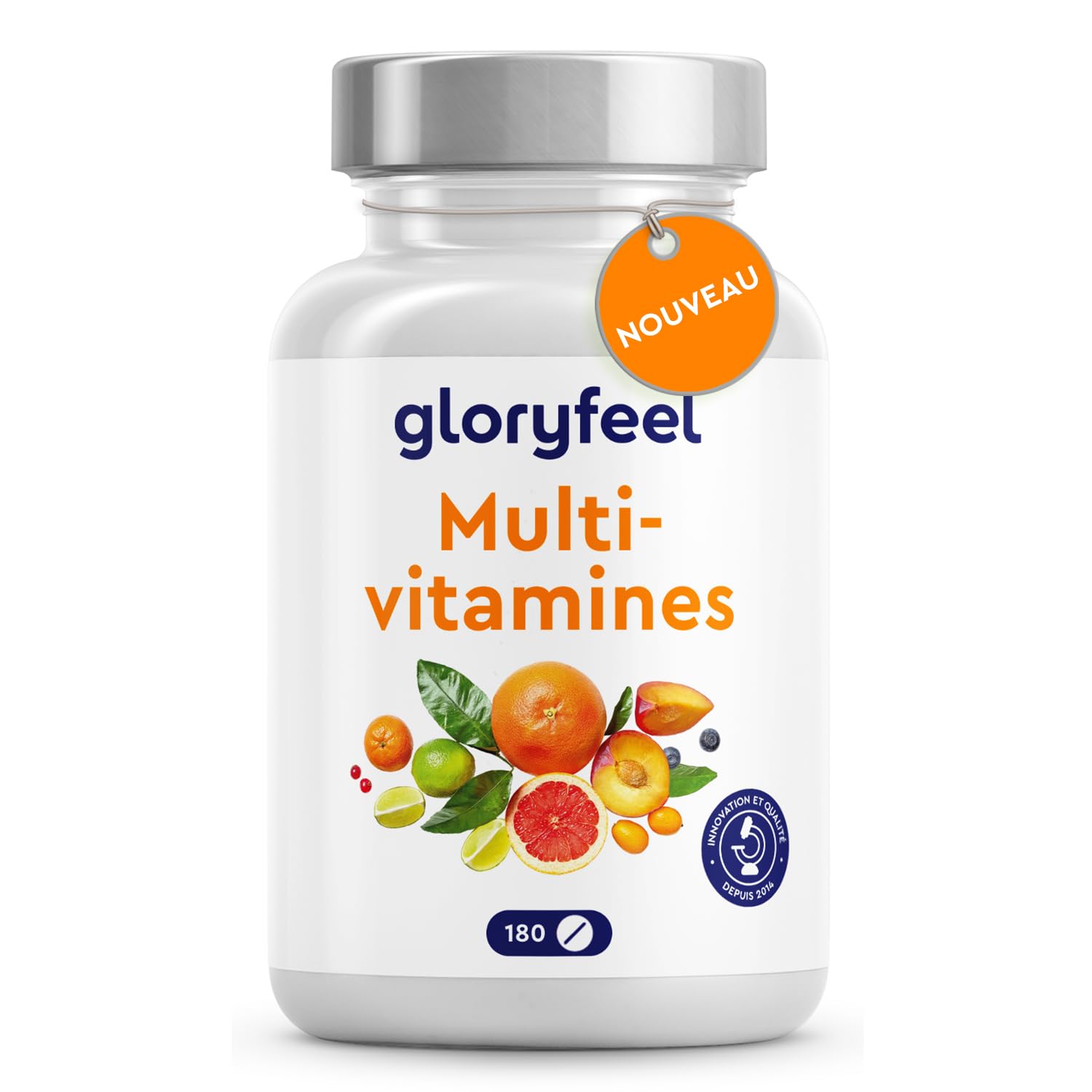 NEW QUALITY AND STABILITY STANDARDS - gloryfeel products are made in Germany and undergo extensive stability testing to maintain consistent quality over a long period of time. Our commitment to exceeding industry standards underscores our leadership in quality assurance. Discover our Certificates of Analysis for greater transparency and confidence. Keep out of reach of children and not recommended for children under 6 years old. PREMIUM QUALITY, NO UNWANTED ADDITIVES - Our multivitamin tablets are made without artificial additives or genetic engineering. No magnesium stearate, no separating agents, no flavors, no stabilizers, no lactose, no gluten, and most importantly, no preservatives. A POWERFUL COMBINATION - One multivitamin tablet contains 15 essential vitamins and minerals, including vitamin A, vitamin B1, vitamin B2, vitamin B3, vitamin B5, vitamin B6, vitamin B7, vitamin B9, vitamin B12, vitamin C, vitamin D, vitamin E, calcium, zinc, and selenium. FOR THE IMMUNE SYSTEM AND MUCH MORE - Vitamins C, D, B6, zinc, and selenium contribute to the normal function of the immune system. Vitamin C, B12, and niacin contribute to the reduction of tiredness and fatigue. Vitamin D contributes to the maintenance of normal bones, normal muscle function, and normal teeth. Riboflavin (vitamin B2) and vitamin A contribute to the maintenance of normal vision. . A CONVENIENT ALL-IN-ONE - Our multivitamin and mineral complex contains the most important nutrients for your overall health. Just one tablet a day is enough to meet your daily needs for over 5 months. Now in a smaller, more convenient size, perfect for on the go!NOUVELLES NORMES DE QUALITÉ ET DE STABILITÉ - Les produits gloryfeel sont fabriqués en Allemagne et sont soumis à des tests de stabilité approfondis afin de maintenir une qualité constante sur une longue période. Notre engagement à dépasser les normes de l'industrie souligne notre position de leader en matière d'assurance qualité. Découvrez nos certificats d'analyse pour plus de transparence et de confiance. Conservez hors de portée des enfants et déconseillé aux enfants de moins de 6 ans. QUALITÉ PREMIUM, SANS ADDITIFS INDÉSIRABLES - Nos comprimés de multivitamines sont fabriquée sans additifs artificiels ou génie génétique. Sans stéarate de magnésium, sans agents de séparation, sans arômes, sans stabilisateurs, sans lactose, sans gluten et surtout sans conservateurs. UNE COMBINAISON PUISSANTE - Un comprimé multivitaminé contient 15 vitamines et minéraux essentiels, notamment la vitamine A, la vitamine B1, la vitamine B2, la vitamine B3, la vitamine B5, la vitamine B6, la vitamine B7, la vitamine B9, la vitamine B12, la vitamine C, la vitamine D, la vitamine E, le calcium, le zinc et le sélénium. POUR LE SYSTÈME IMMUNITAIRE ET BEAUCOUP PLUS - Les vitamines C, D, B6, le zinc et le sélénium contribuent au fonctionnement normal du système immunitaire. La vitamine C, B12 et la niacine contribuent à la réduction de la fatigue et de l'épuisement. La vitamine D contribue au maintien d'une ossature normale, d'une fonction musculaire normale et d'une dentition normale. La riboflavine (vitamine B2) et la vitamine A contribuent au maintien d'une vision normale. . UN TOUT EN UN PRATIQUE - Notre complexe de multivitamines et de minéraux contient les nutriments les plus importants pour votre santé globale. Un seul comprimé par jour suffit pour répondre à vos besoins quotidiens pendant plus de 5 mois. Maintenant dans un format plus petit et plus pratique, parfait pour les déplacements !.