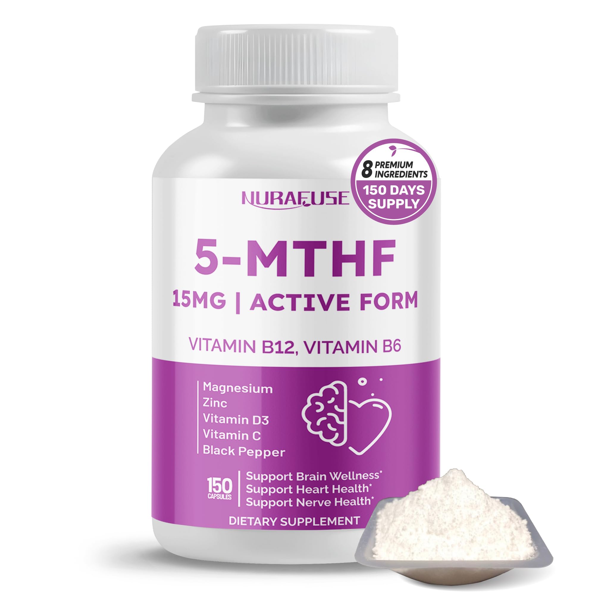 High Potency 5-MTHF (Active Form) with Vitamin B12 Vitamin B6 Magnesium & Black Pepper Supports Brain Wellness Heart Health & Nerve Health* 150 count (pack of 1)