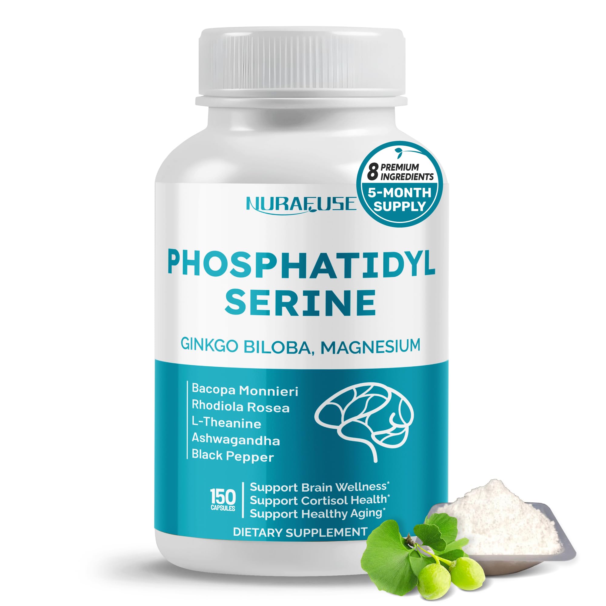 There are days when your brain just doesn’t seem to keep up—your focus drifts, mental clarity fades, and even everyday tasks take more effort. Even with enough sleep, your mind doesn’t feel as clear or sharp, even after a good night’s sleep. Long hours, tight schedules, and nonstop demands can leave you feeling long days and nonstop demands can leave you feeling mentally worn down. Instead of reaching for another cup of caffeine, there’s a simpler daily habit that helps from within. One small NuraFuse Phosphatidylserine capsule daily, thoughtfully packed with 8 natural ingredients helps support clearer thinking and steady focus. Rhodiola and Ashwagandha help you stay grounded under pressure, while Bacopa and Phosphatidylserine support memory recall and mental clarity—so you can stay on top of your day with more ease and confidence.Rest Assured: Nurafuse prioritizes health with the highest-quality, responsibly sourced ingredients, and adheres to GMP standards. Each product is crafted with care, ensuring effective, reliable supplements for your vitality and well-being. High Standards: Nurafuse ensures trust and purity through rigorous testing of every ingredient in ISO 17025-accredited labs. All ingredients are 100% natural, non-GMO, gluten-free, and chemical-free. Outstanding Advantages: Supports memory, focus, cognitive function and promoting effective thinking. Natural Ingredients: A powerful mix of Phosphatidylserine, Ginkgo Biloba, Magnesium, Black Pepper, Ashwagandha, L-Theanine, Rhodiola Rosea, and Bacopa Monnieri for brain and cognitive wellness. Exceptional Value: Each bottle of NuraFuse Phosphatidylserine Supplement comes packed with 150 capsules, offering 5-month supply. With just one capsule per day, it’s effortless to integrate into your daily wellness routine—convenient, effective, and long-lasting!.
