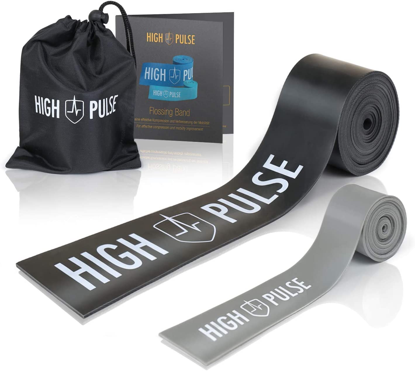 High Pulse Flossing Band 2er Set inkl. gratis Transporttasche und Beileger – Flossband 1,5 mm stark für Gelenke, Sehnen und Bänder Mini-Flossband für Zehen und Finger Stärke 1,5 mm 1 mm