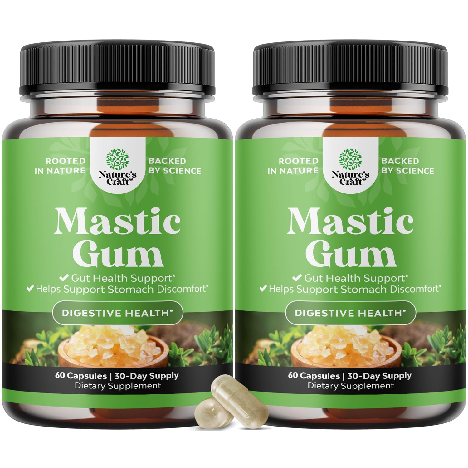 Natures Craft Quality - We are proud to be a leading name in a variety of digestive supplements because we understand how important it is to support your body and still be able to enjoy your lifestyle. Trusted Brand - Choose Nature's Craft and our carefully sourced gluten free and vegan mastic gum supplement made in the USA in GMP facility and lab tested for quality control you can trust. Vegan Non-GMO Formula - We use carefully chosen ingredients in our mastic gum capsules to give you a quality tested herbal formula that is easy to take and offers a variety of health benefits. A More Natural Digestive Support - Our vegan capsules are carefully crafted to contain high levels of cleansing soothing and protective nutrients to promote digestive health and wellness from within. Household Staple - Mastic gum is a must have to keep handy around the year whenever someone is dealing with any type of stomach discomfort or digestive imbalance to get them back on track faster.