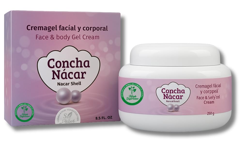 HIGH SUPREME Concha N car (Mother of Pearl) Face & Body Gel Cream 8.5 fl oz With Collagen Elastin Vitamin E & Glycerin Nourishing & Radiance Support 100% Natural Ingredients