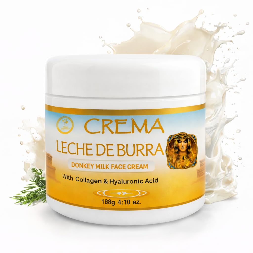 Inspired by Ancient Beauty Rituals Donkey milk has been prized for centuries as a skin-nourishing elixir. Inspirada en Rituales de Belleza Ancestrales La leche de burra ha sido apreciada por siglos por sus beneficios para la piel. Anti-Aging Skin Renewal Properties Helps reduce the appearance of fine lines and dullness. Propiedades Anti-Edad y Renovadoras Contribuye a reducir líneas finas y signos de cansancio. Natural, Gentle Formula – Non-Greasy Feel Leaves skin soft, fresh, and glowing without oily residue. Fórmula Natural y Suave – Sin Sensación Grasosa Textura ligera que deja la piel suave, fresca y luminosa. Moisturizes Dry, Sensitive Mature Skin Ideal for daily care – soothes, nourishes and revitalizes your complexion. Hidratación para Piel Seca, Sensible y Madura Calma, ayuda a nutrir y revitaliza tu piel en cada aplicación diaria. Enriched with Donkey Milk, Collagen Hyaluronic Acid A luxurious blend that deeply hydrates and promotes skin elasticity. Enriquecida con Leche de Burra, Colágeno y Ácido Hialurónico Hidratación profunda y elasticidad para una piel más firme y radiante.