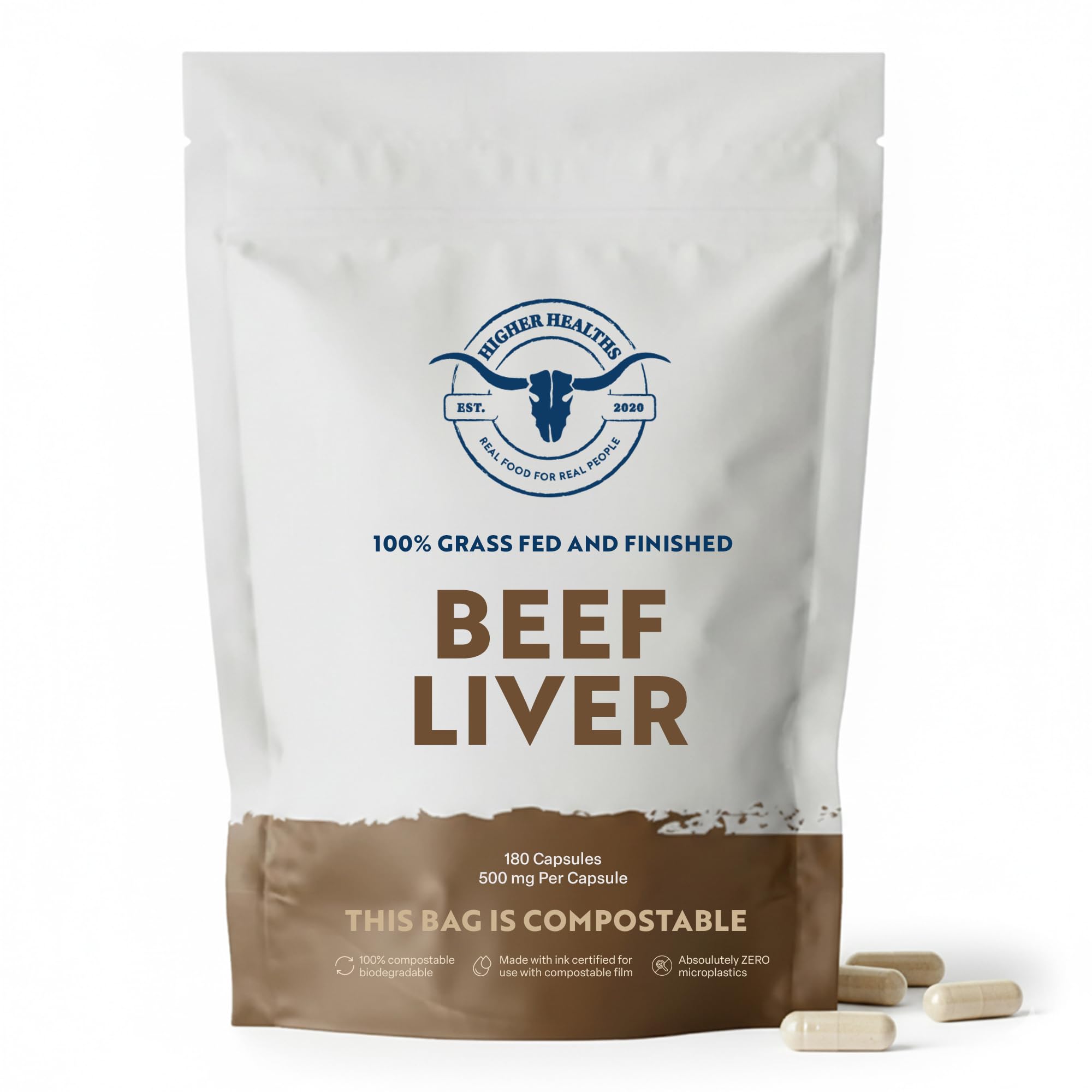MADE IN USA: Responsibly sourced from local American farmers and grass fed-and-finished cattle. Beef organs are frozen immediately after butchering, then freeze-dried and encapsulated locally —keeping the process close to the source for consistent freshness and quality. CLEAN, SIMPLE INGREDIENTS: Paleo, Primal, Carnivore, and Ketogenic friendly. Pure beef organ capsules — no fillers, no binders, and no artificial additives. A single-organ blend in capsule form. Not recommended for vegans. HOW MUCH YOU GET: Higher Healths Beef Liver pills contain 180 capsules per pouch, with 30 daily servings (2 capsules, 3×daily with food). Each 6-capsule serving provides 3000 mg of pure beef organ meat. Suitable for adults 19 years old. NUTRIENT-DENSE ORGAN FOOD: Our grass fed liver supplement is rich in vitamin B12 A, key minerals (iron, zinc, copper), choline and folate naturally found in organ meats — holistic support your mind and body needs. 100 GRASS FED FINISHED BEEF LIVER SUPPLEMENT: Made from grassfed beef liver — an organ food traditionally valued for its nutrient density. These beef liver supplements for women and men provide a convenient way to support your daily routine.