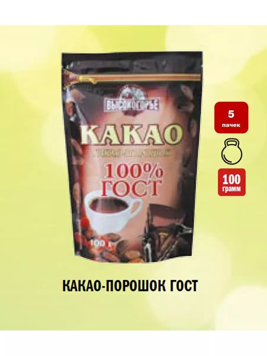 | Комплектация | Какао порошок натуральный ГОСТ, 100 грамм, 1 пачка; Какао порошок натуральный ГОСТ, 100 грамм, 2 пачки; Какао порошок натуральный ГОСТ, 100 грамм, 3 пачки; Какао порошок натуральный ГОСТ, 100 грамм, 10 пачек; Какао порошок натуральный ГОСТ, 100 грамм, 5 пачек |