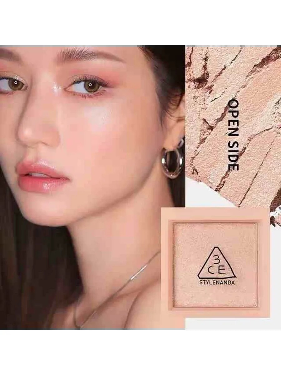 3CE #OPEN SIDE Highlighter is a high-optical cosmetic product designed to modify and improve skin. The highlighter's dry texture provides long-lasting coverage and a natural glow. It is designed for application to the face, giving it a fresh and rested look. The highlighter formula is safe and free of parabens and toluene, and is also non-comedogenic, making it suitable for daily use. brThis shade features a glossy finish that delicately highlights the protruding parts of the face, creating the effect of healthy and radiant skin. The highlighter is designed for an adult target audience. brThe volume of the product is 4.8 ml. Made in Korea. Packaging is an eco-box, which emphasizes concern for the environment.