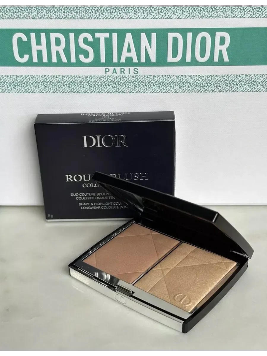 Rouge Blush Colour & Glow - двойная палитра с матовым и сияющим финишем от Dior. В одно движение пудровые текстуры легко смешиваются с кожей, создавая эффект "румянец и сияние" или "контур и сияние" в зависимости от выбранной гармонии.