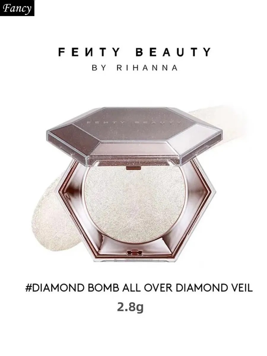 Luxurious Fenty Beauty Highlighter. Diamond highlight with a glossy finish. Ideal for face and body, adding a shimmering glow. The formula is paraben- and toluene-free. Recommended for adults. Properties: Type: Highlighter Color: White00 Texture: Dry Area of ​​use: Body, Face Ingredients: Paraben-free, toluene-free Shade feature: Glossy Target audience: Adults Units per product: 1 Weight, g: 2.8