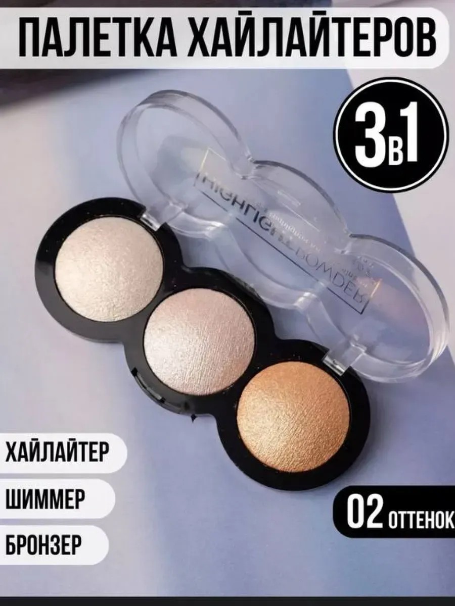 Палетка хайлайтера 02 — это идеальный инструмент для создания сияющего и скульптурного макияжа. Ее мягкая, пудровая текстура легко наносится и растушевывается, обеспечивая естественное свечение. В палетке представлены три универсальных оттенка: золотистый, серебристый и золотисто-коричневый, которые подходят для различных тонов кожи и позволяют создать как дневной, так и вечерний образ. Используйте хайлайтер для лица, чтобы подчеркнуть скулы, переносицу, cupid's bow и другие зоны, которые вы хотите выделить.