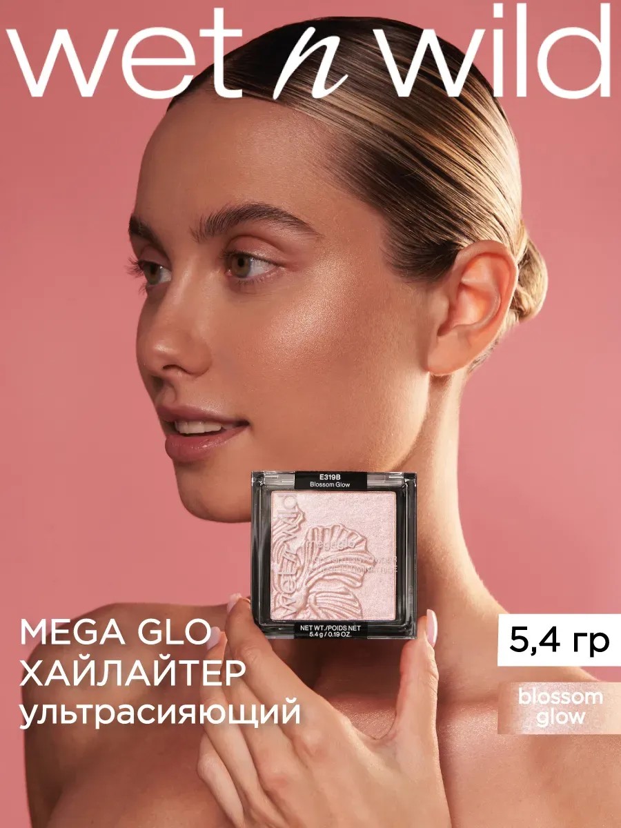 MegaGlo Highlighting Powder from the official distributor of Wet n Wild decorative cosmetics in Russia. WINNER of the international Allure Best of Beauty award. MegaGlo Highlighting Powder has long earned worldwide fame as an absolute bestseller for its even radiance thanks to its micro-pearl pigment and silky texture. This product creates an incredible glow and a coverage that blends seamlessly with the skin. This dry highlighter is available in two shades: E321B - a "wheat" shade - a delicate color suitable for brunettes with dark skin or while tanning. E319B - is suitable for a pronounced effect, an intense pearlescent glow, and is also suitable for everyday or wedding makeup. It is also recommended for blondes and fair-skinned women. This baked highlighter doesn't dry out or tighten skin thanks to argan and shea butters, as well as vitamin E for added hydration. MegaGlo Highlighting Powder creates the visual effect of healthy, well-groomed, luxurious skin that glows from within. The fine particles of MegaGlo highlighter create a beautiful glow and accentuate the facial features, creating perfect contouring. HOW TO USE: This shimmery face powder comes in a convenient palette and can be applied to cheekbones, bridge of the nose, forehead, Cupid's bow (above the upper lip), brow bones, and chin. Apply with a highlighter brush or fingertips. The highlighter can also be applied to the body. We recommend applying to the collarbones to beautifully highlight the décolleté. MegaGlo Face Highlighter doesn't flake or fade, creating a natural glow and a healthy, youthful-looking effect. Perfect for anti-aging makeup.