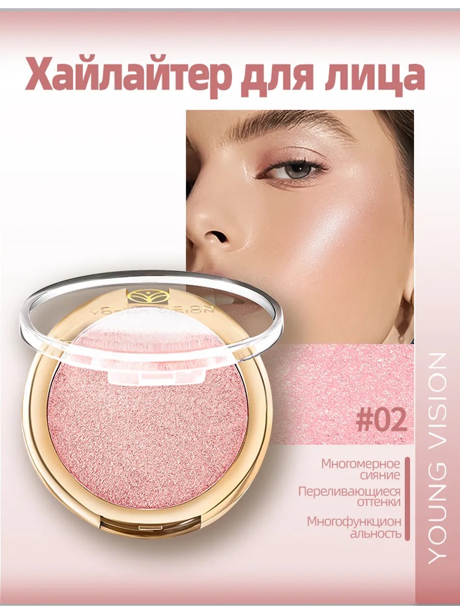 Светоотражающие частицы создают естественное сияние на скулах, переносице и надбровных дугах. Придает чертам лица объем и свечение, подходящее для повседневного и вечернего макияжа.