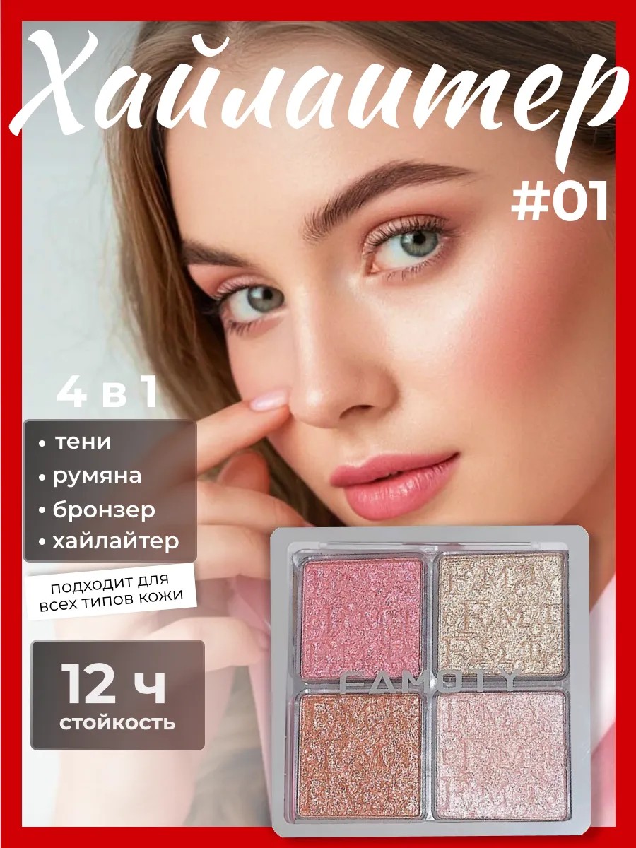 Многофункциональная палетка FAMOTY Highlighter Palette 01 содержит все необходимое для создания идеального сияния на лице. Благодаря своей сухой текстуре, хайлайтер легко наносится и растушевывается, обеспечивая естественное и стойкое сияние. Палетка включает в себя четыре оттенка 4 в 1: