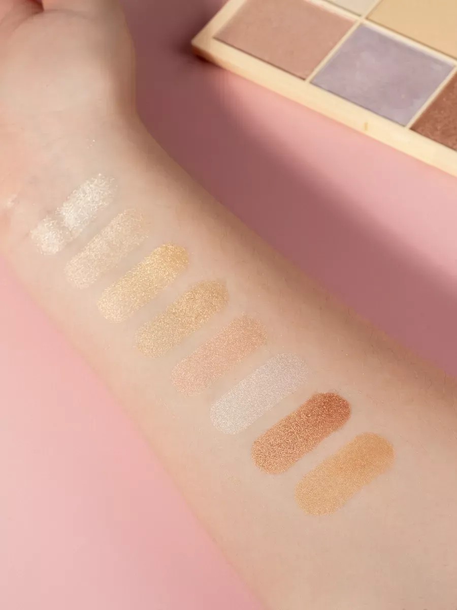 The Soph Highlighter Palette is a collaboration between the British brand Revolution Makeup and blogger Sophdoesnails. If you're looking for a highlighter palette that will perfectly complement any look, you've come to the right place. It offers everything from the natural glow of healthy skin to a dazzling shine visible from space. We've collected eight different powder-textured shades that can be used individually on different areas of the face or mixed together to achieve the desired saturation and tone. There's a shade to suit every taste, and even the darkest ones are quite popular, as they can be used as eyeshadow. Highlighters come in different textures. Pressed highlighters look slightly softer and more delicate, they're more subdued and perfect for daytime makeup. Baked highlighters, on the other hand, are more saturated and will be the perfect finishing touch for an evening look. The pigmentation is high, leaving no blemishes on the skin.