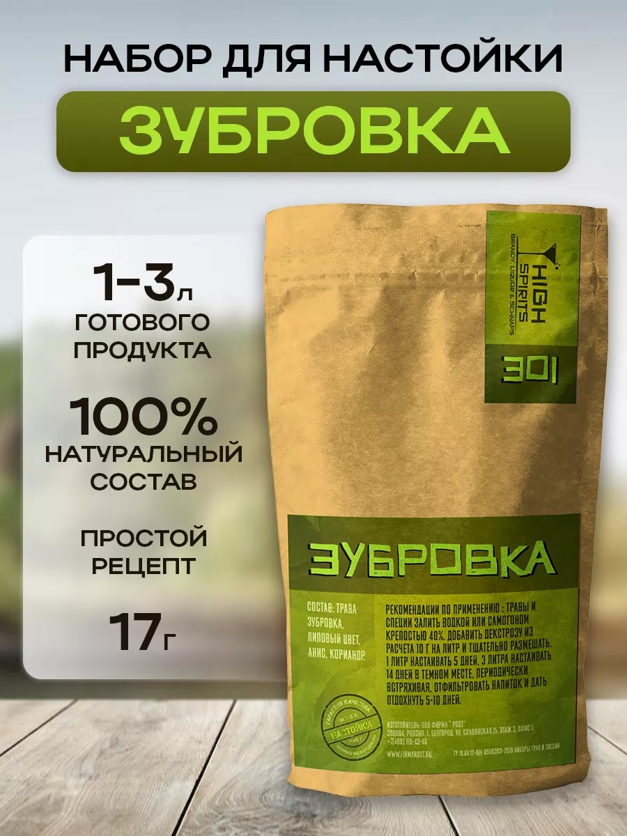 Зубровка - настоящая водка-легенда, с древней историей и массой почитателей на всем постсоветском пространстве. Жесткую многолетнюю бизонову траву, которую называют зубровкой душистой, ценят за необыкновенный ванильный аромат. Её родина - Северная Америка и Европа. Входит в набор как основной компонент. В диком виде эта трава до сих пор растет в Беловежской пуще между Польшей и Белоруссией, где ею питаются охраняемые стада зубров (Зубровка в наборе дикая, из Белоруссии). Сбор дикой зубровки жестко регламентирован - установлено количество, которое нельзя превышать. После сбора травку высушивают специальным образом. Набор для настойки самогона или водки состоит: Трава зубровка, липовый цветок, анис, кориандр.