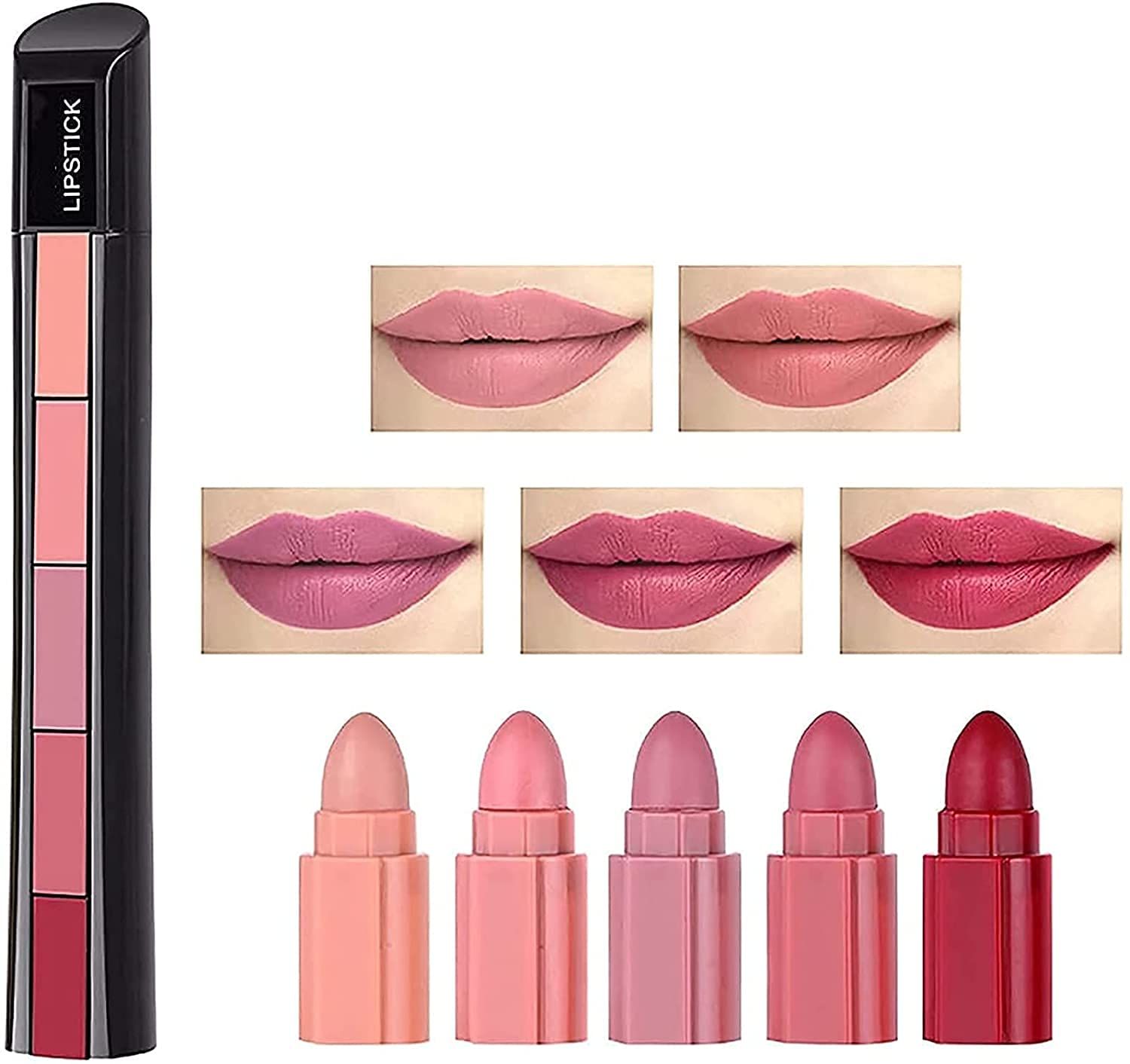 Features: Type: 5-in-1 Velvet Matte Lipstick Colors: 5-color set Suitable for: General use Dimensions: 14.5 x 2 x 1.8 cm Weight: 33 g Shelf life: 3 years How to use: Remove the top cap and push the lipstick upwards. Contents: 1 lipstick Tips: Stretch lips during application to avoid creg. Wipe with makeup remover when removing makeup. The color of the lipstick inside will be slightly different from the color outside. Keep out of reach of children.Easy to remove: Cruelty-free, vegan, and not tested on animals. Long-lasting and kiss-proof, easily removed with oil-based makeup remover. Multiple occasions : Silky, exquisite, and elegant, it lightly coats your lips, suitable for all seasons, especially for the office, dates, shopping, and summer evenings with friends. Natural formula : Made with beeswax, mineral oil, and other natural ingredients, the natural beeswax locks in moisture for a long-lasting hydrating effect, giving you a beautiful, attractive matte color instantly. Easy to carry : Trendy lipstick with a new 5-in-1 design. A variety of colors are available. Convenient to carry, with a range of colors, suitable for everyday travel. Long-lasting color: The velvet matte lipstick is highly pigmented to provide rich color and a comfortable, lightweight feel. With full coverage that will last all day.Rouge à lèvres mat 5 en 1 classique non marquant, imperméable, longue durée, lisse, doux à portée, couleurs complètes, anti-adhésif, brillant, hydratant pour femme (B)DESCRIPTION DU PRODUIT Caractéristiques : Type : rouge à lèvres mat velours 5 en 1 couleurs Couleurs : lot de 5 couleurs Convient pour : général. Dimensions : 14,5 x 2 x 1,8 cm Poids : 33 g Durée de conservation : 3 ans Utilisation : retirez le couvercle supérieur et poussez le rouge à lèvres vers le haut. Contenu : 1 rouge à lèvres. Conseils : Étirez les lèvres pendant l'application pour éviter les rides. Essuyez avec un démaquillant lorsque vous retirez le maquillage. La couleur du rouge à lèvres intérieur sera légèrement différente de celle de l'extérieur. Tenir hors de portée des enfants.Facile à enlever : sans cruauté envers les animaux, végétalien et non testé sur les animaux. Longue tenue et résistant aux baisers, facile à enlever avec de l'huile dissolvante. Plusieurs occasions : il est soyeux, exquis et élégant, maquille vos lèvres légèrement, adapté pour toutes les saisons, en particulier au bureau, en rendez-vous, en shopping, en soirée d'été avec des amis. Formule naturelle : cire d'abeille, huile minérale et autres ingrédients naturels, la cire d'abeille naturelle bloque l'eau pour obtenir un effet hydratant durable, vous obtenez une belle couleur mate attrayante au moment. Facile à transporter : rouge à lèvres tendance avec un nouveau design 5 en 1. Une variété de couleurs sont disponibles. Pratique à transporter, avec une variété de couleurs, adapté pour les voyages quotidiens. Couleur longue durée : le rouge à lèvres mat velours est hautement pigmenté pour donner une couleur riche et une sensation de légèreté confortable. Avec une couverture complète qui durera tout au long de la journée.