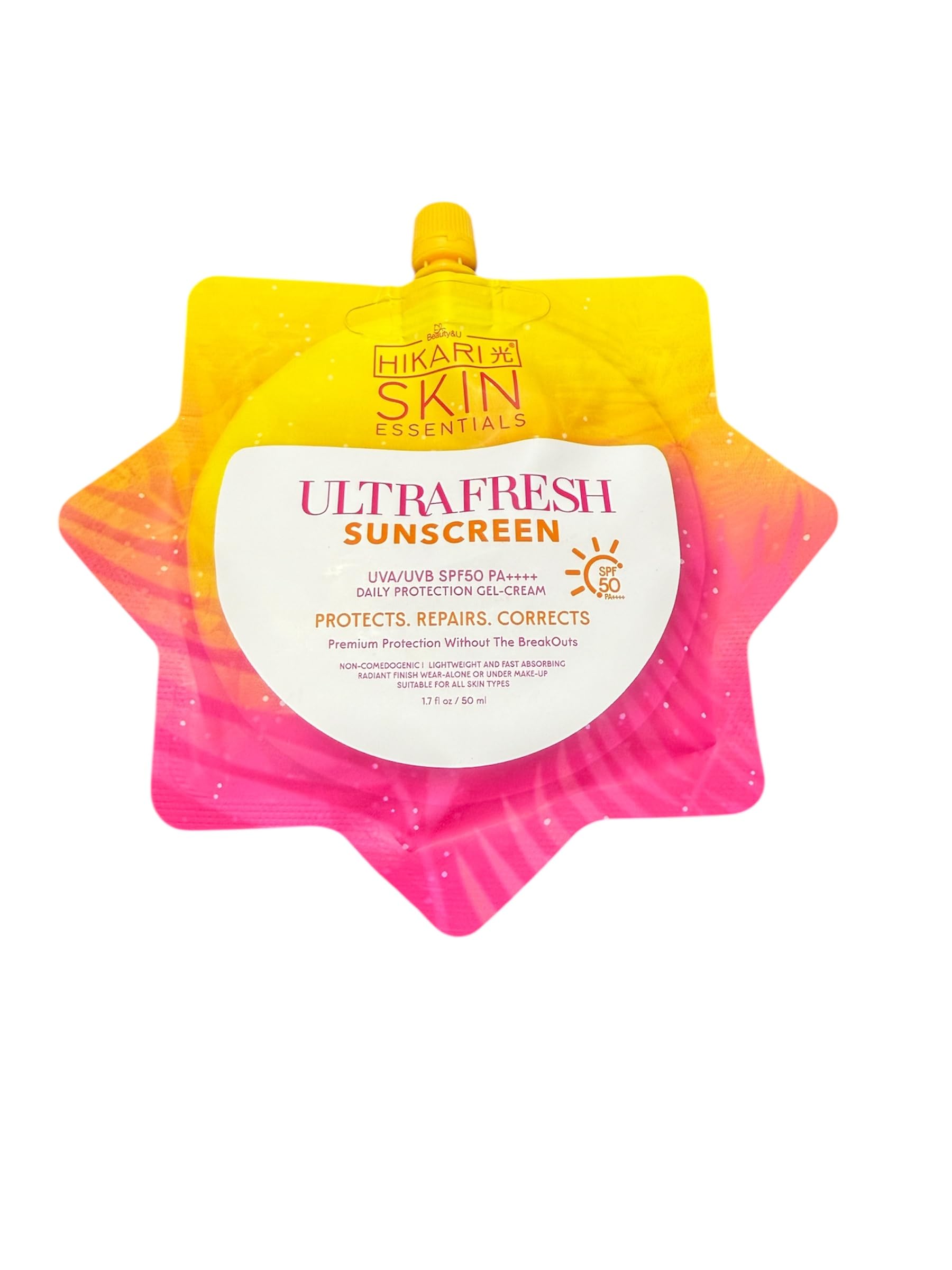 HIKARI SKIN ESSENTIALS – ULTRA FRESH SUNSCREEN SPF 50 Elevate your skincare routine with HIKARI Skin Essentials' Ultra Fresh Sunscreen. This daily protection gel-cream has SPF 50 and is expertly formulated to provide premium protection against harmful UVA and UVB rays. Embrace the sun with confidence! HIKARI Skin Essentials Ultra Fresh Sunscreen is your go-to solution for sun protection, hydration, and natural coverage. Experience the perfect blend of skincare and makeup, and let your skin glow with vitality while staying shielded from the sun's harmful rays.