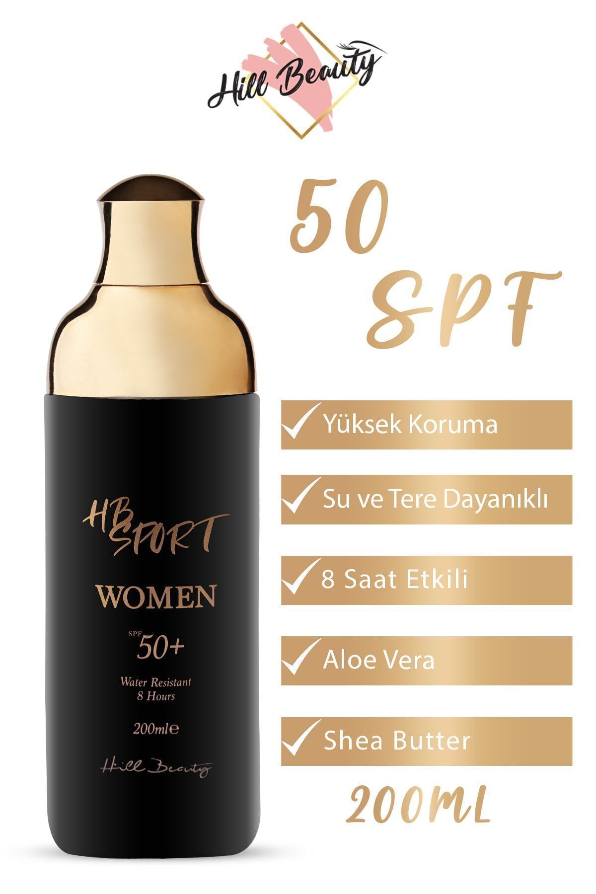 Hill Beauty Turkey 50 Spf 8 Hours Water and Sweat Resistant Aloe Vera Extract (HIGH PROTECTION) Women's Body Sun Cream 200ml