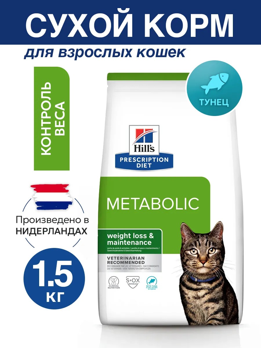 Hill's Prescription Diet Metabolic для кошек (Тунец) — сухой диетический корм для кошек, способствующий снижению и контролю веса с учётом уникальных потребностей кошек.
