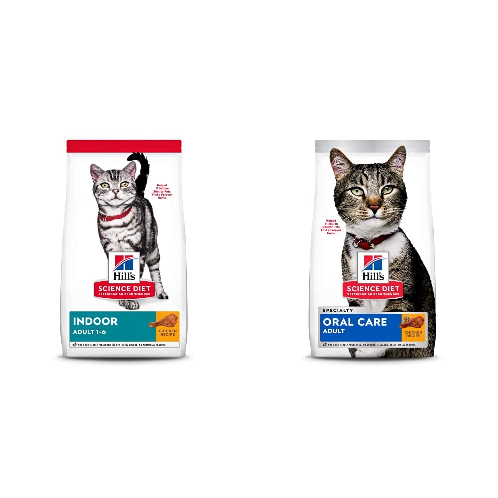Hill's Science Diet Adult Indoor Dry Cat Food Chicken Recipe 7 lb Bag & Adult Oral Care Chicken Recipe Dry Cat Food for Dental Health 7 lb Bag