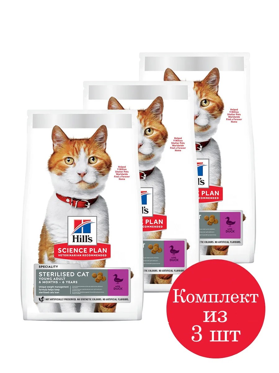 | Комплектация | Сухой корм Hill's Science Plan для стерилизованных кошек до 7 лет, с уткой, 300 г - 3 шт. |