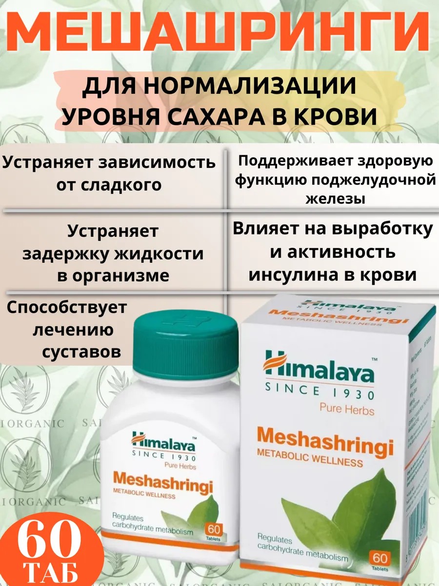 Мешашринги "Meshashringi" от Himalay Wellness Since 1930 - это натуральный продукт, разработанный для поддержки здоровья и нормализации уровня сахара в крови. Этот уникальный экстракт, созданный из Carefully selected natural extracts, помогает снизить тягу к сладкому, что особенно важно для людей, страдающих диабетом I и II типа, а также для тех, кто стремится к нормализации веса. "Meshashringi" способствует снижению уровня глюкозы в крови, что может быть полезно при гликозурии и повышенном уровне сахара в моче.