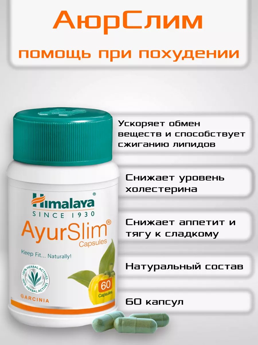 Himalaya AyurSlim (Аюрслим) — Индийский аюрведических препарат, который помогает людям справляться с одними из наиболее распространенных в наше время недугами — лишним весом и отложением холестерина в сосудах. Тщательно подобранное сочетание трав в единой формуле Ayurslim Himalaya, позволяет организму безопасно сжигать жир в теле, обеспечивая длительный эффект в отличие от большинства других предлагаемых средств для похудения. Главное его достоинство в том, что он значительно уменьшает тягу к сладкому и перееданию в целом, в особенности на нервной почве. Способствует не только контролю веса, но и улучшению работы органов пищеварительного тракта. Действие препарата обусловлено эффектом снижения аппетита за счет свойств таких растительных компонентов, как харитаки, мешашринги, врикшамла, пажитник и смола дерева гуггул. Запускает механизм мягкого очищения организма от токсинов, что приводит к нормализации функции пищеварения, а также улучшению состояния кожи и суставов. Очищает кровь, снижает уровень глюкозы и холестерина, нормализует уровень триглицеридов.