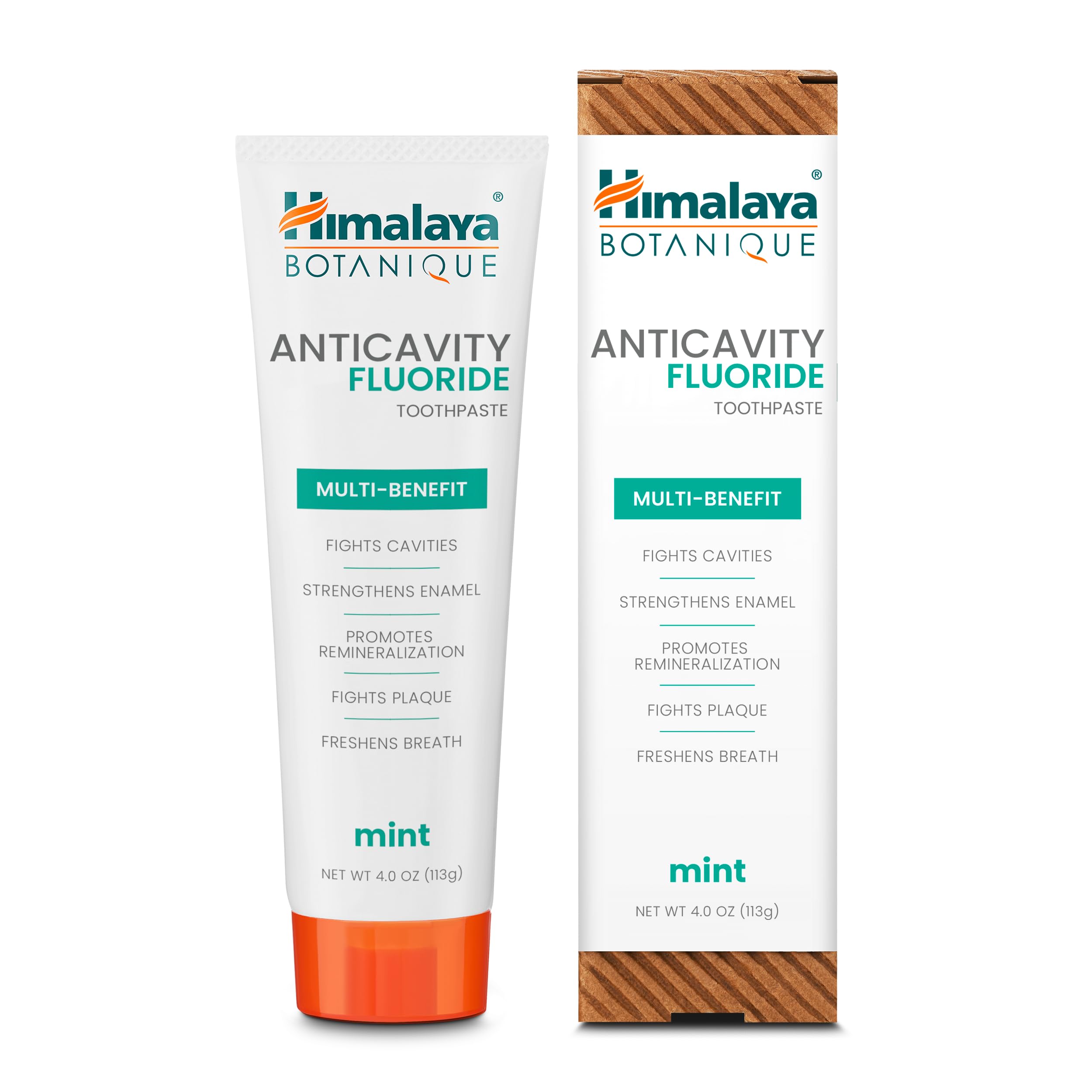 CLEANS FRESHENS BREATH: An effective formula that helps clean and combat plaque with regular brushing, plus a refreshing mint flavor that leaves breath feeling fresh. PROMOTES REMINERALIZATION: Formulated with fluoride to help remineralize enamel, supporting your teeth's natural defenses. STRENGTHENS ENAMEL: Our formula strengthens enamel, helping to keep your teeth strong and resilient against everyday wear and tear. CAVITY PROTECTION: Protect your smile with Himalaya Botanique Anticavity Fluoride Toothpaste, designed to effectively fight and prevent cavities for a healthy-looking mouth. FLUORIDE WITH MULTI-BENEFIT: A fluoride-powered toothpaste combining fluoride with botanical ingredients to deliver a comprehensive multi-benefit oral care experience.
