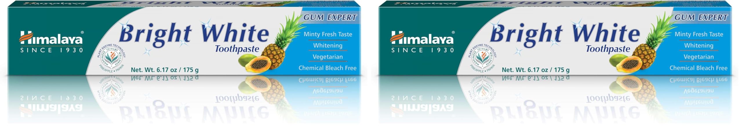 Himalaya Bright White Toothpaste Fluoride Free to Reduce Plaque & Whiten Teeth 6.17 oz (Pack of 2)