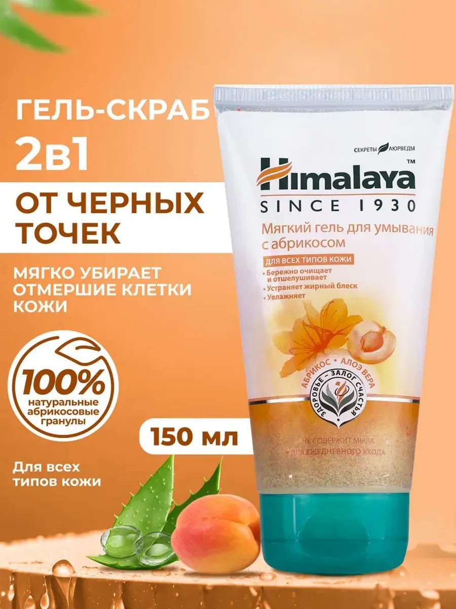 Гель для умывания Himalaya очищающий и отшелушивающий с абрикосом и алоэ вера