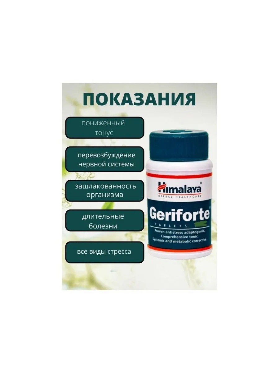 Geriforte от HIMALAYA - аюрведческий препарат, обладающий широким спектром применения. продукт приводит в норму высокий уровень холестерина, выводит вредные вещества, накопившиеся в организме, нормализует АД, пробуждает аппетит, устраняет нарушение сна, может использоваться в качестве антидепрессанта. Также обладает омолаживающим эффектом, оказывает положительное влияние на сердечную мышцу, улучшает состояние зубов, волос и ногтей, повышает защитные функции организма. Способ применения: Герифорте применяют дважды в сутки, по одной таблетке. Минимальный курс терапии - 30 дней. Так как состав средства на 100% натуральный, при необходимости, можно увеличить дозировку 2 -таблетки 3-4 раза в день.