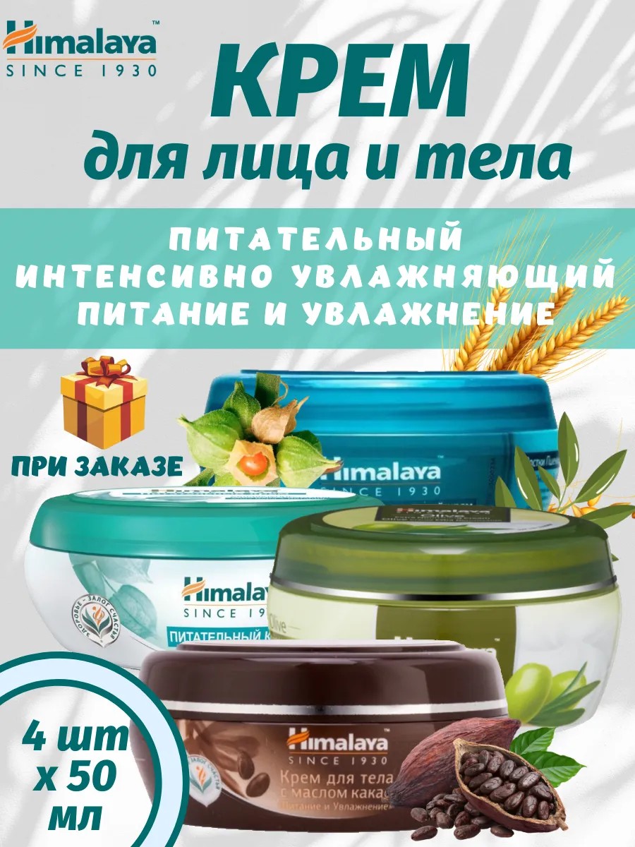 Набор кремов Himalaya Питательный+Интенсивно увлажняющий+Экстра Питательный Олива+С маслом какао. В набор входят: Питательный крем для лица и тела Himalaya Since 1930 50 мл., Крем для лица и тела Himalaya Интенсивно увлажняющий Ростки пшеницы Сладкий миндаль 50 мл., Крем Экстра Питательный Himalaya Олива 50 мл., Крем для тела с маслом какао Himalaya Питание и Увлажнение 50 мл. Питательный крем - легкий, нежирный крем для ежедневного применения. Сохраняет здоровье и эластичность кожи. Интенсивно увлажняющий крем придаст вашей коже сияние, свежесть, здоровый и ухоженный вид. Подходит для всех типов кожи. Идеально ухаживает за нежной кожей лица в зимнее время. Экстра Питательный крем защищает кожный покров от неблагоприятного влияния свободных радикалов, а также насыщает его влагой и успокаивает. Растительные церамиды, восстанавливают гидролипидную мантию и pH эпидермиса, предотвращая появление шелушения и чувства стянутости, а миндальное масло повышает тургор и эластичность кожи. Крем с маслом какао восстанавливает естественные защитные механизмы и удерживает влагу в коже.