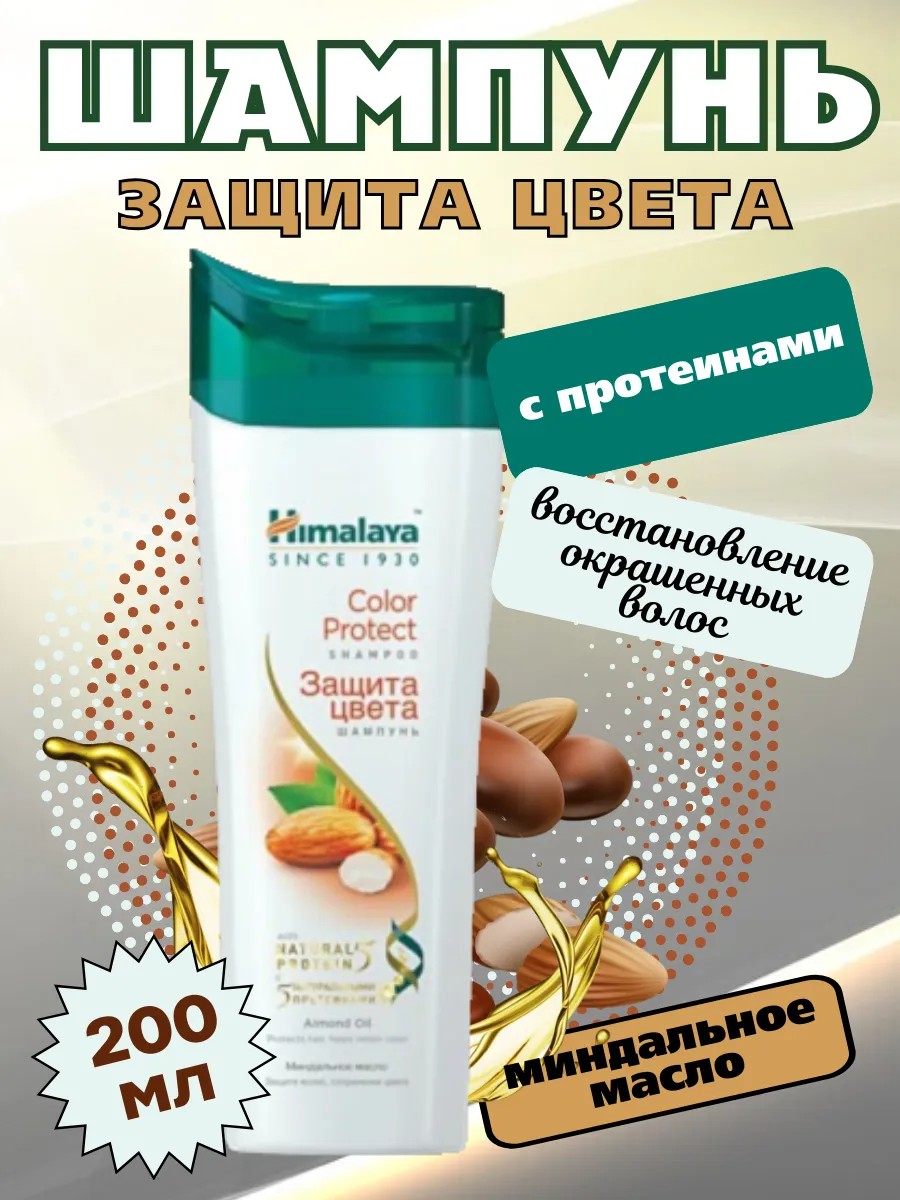 HIMALAYA Shampoo for Colored Hair with Almond Oil and 5 Natural Proteins is an Indian hair care product. This moisturizing shampoo protects color-treated hair from sun damage and helps maintain its shine and radiance. This nourishing shampoo, with a white, creamy texture and pleasant scent, lathers well and gently cleanses the hair and scalp of impurities. This hair care product is ideal for protecting and preserving the color of color-treated hair. This smoothing shampoo contains almond oil and a complex of 5 natural proteins. ALMOND OIL nourishes and moisturizes hair, improving its appearance – making it soft and shiny, while maintaining the smoothness and silkiness of locks. 5 NATURAL PROTEINS strengthen hair, reduce breakage, protect against damage, provide nourishment, and leave strands smooth and shiny. APPLICATION: Apply shampoo to damp hair, gently massage into hair and scalp. Rinse thoroughly with water. Repeat if necessary. HIMALAYA Since 1930 (Himalaya) - Indian cosmetics created using modern scientific methods and the principles of Ayurveda - the Indian teaching of health and longevity. HIMALAYA cosmetics are not tested on animals, contain natural ingredients, and are dermatologist-tested. Enjoy healthy and beautiful hair every day with HIMALAYA!