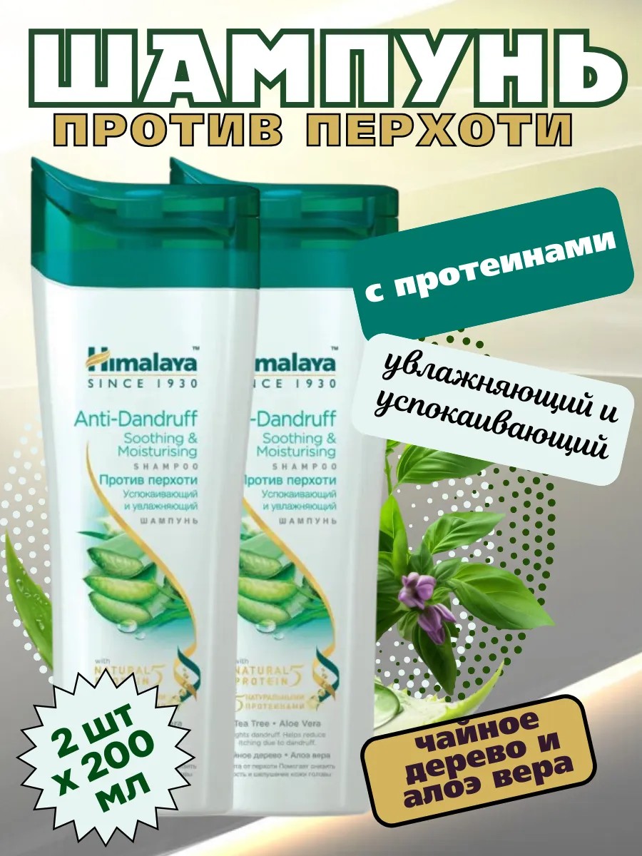 Успокаивающий и увлажняющий шампунь для сухих волос "Против перхоти" с чайным деревом и алоэ вера - Anti-dandruff Soothing and moisturizing shampoo, 200 мл. Универсальный - женский, мужской, подростковый, детский (3+). Восстанавливающее средство с натуральными протеинами решает все основные проблемы. Шампунь обеспечивает укрепление и питание, делая волосы более плотными, сильными, гладкими и шелковистыми. Защищает от повреждений и способствует уменьшению ломкости. Питательные вещества алоэ вера эффективны для поврежденных и сухих волос. Очищающий шампунь имеет приятный аромат. Гипоаллергенное средство подходит для женщин, мужчин, подростков и детей от 3 лет. Также может использоваться для натуральных / окрашенных и волос с химической завивкой.НАТУРАЛЬНЫЕ РАСТИТЕЛЬНЫЕ КОМПОНЕНТЫ: Алоэ вера - успокаивает, увлажняет и смягчает сухую кожу головы. Масло чайного дерева - увлажняет, оказывает противовоспалительный, антибактериальный, противогрибковый и антисептический эффект.Himalaya Since 1930 (Хималая / Гималаи) - веганская уходовая косметика из Индии для ежедневного использования.