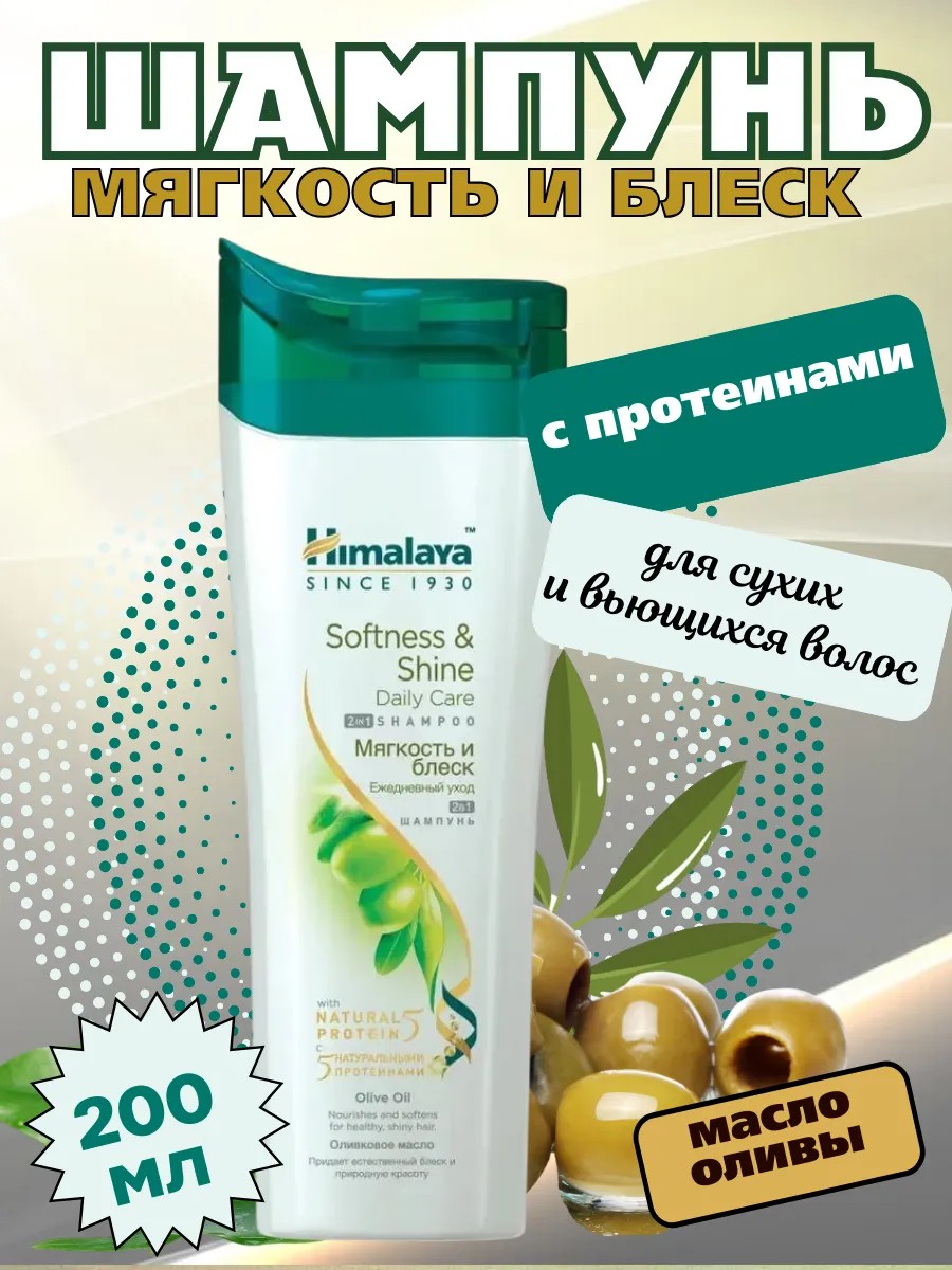 HIMALAYA Daily Shampoo "2 in 1: Softness and Shine" with Olive Oil and 5 Natural Proteins is an Indian hair care product. This nourishing shampoo smooths and adds natural shine, leaving hair soft and strong. This shampoo for damaged hair has a white, creamy texture and a delicate aroma, lathers well and gently cleanses the hair and scalp of impurities. This hair care product is gentle on curls, making it ideal for daily care of dry and normal hair, including color-treated and permed hair. This shampoo for smooth, shiny hair contains olive oil and a complex of 5 natural proteins. OLIVE OIL is rich in vitamins A, E, and antioxidants, moisturizing and nourishing hair from root to tip, protecting the hair's natural keratin. 5 NATURAL PROTEINS strengthen hair, reduce breakage, protect against damage, provide nourishment, and make strands smooth and shiny. APPLICATION: Apply shampoo to damp hair, gently massage into hair and scalp. Rinse thoroughly with water. Repeat if necessary. HIMALAYA Since 1930 (Himalaya) - Indian cosmetics created using modern scientific methods and the principles of Ayurveda - the Indian teaching of health and longevity. HIMALAYA cosmetics are not tested on animals, contain ingredients of natural origin, and are dermatologist-tested.