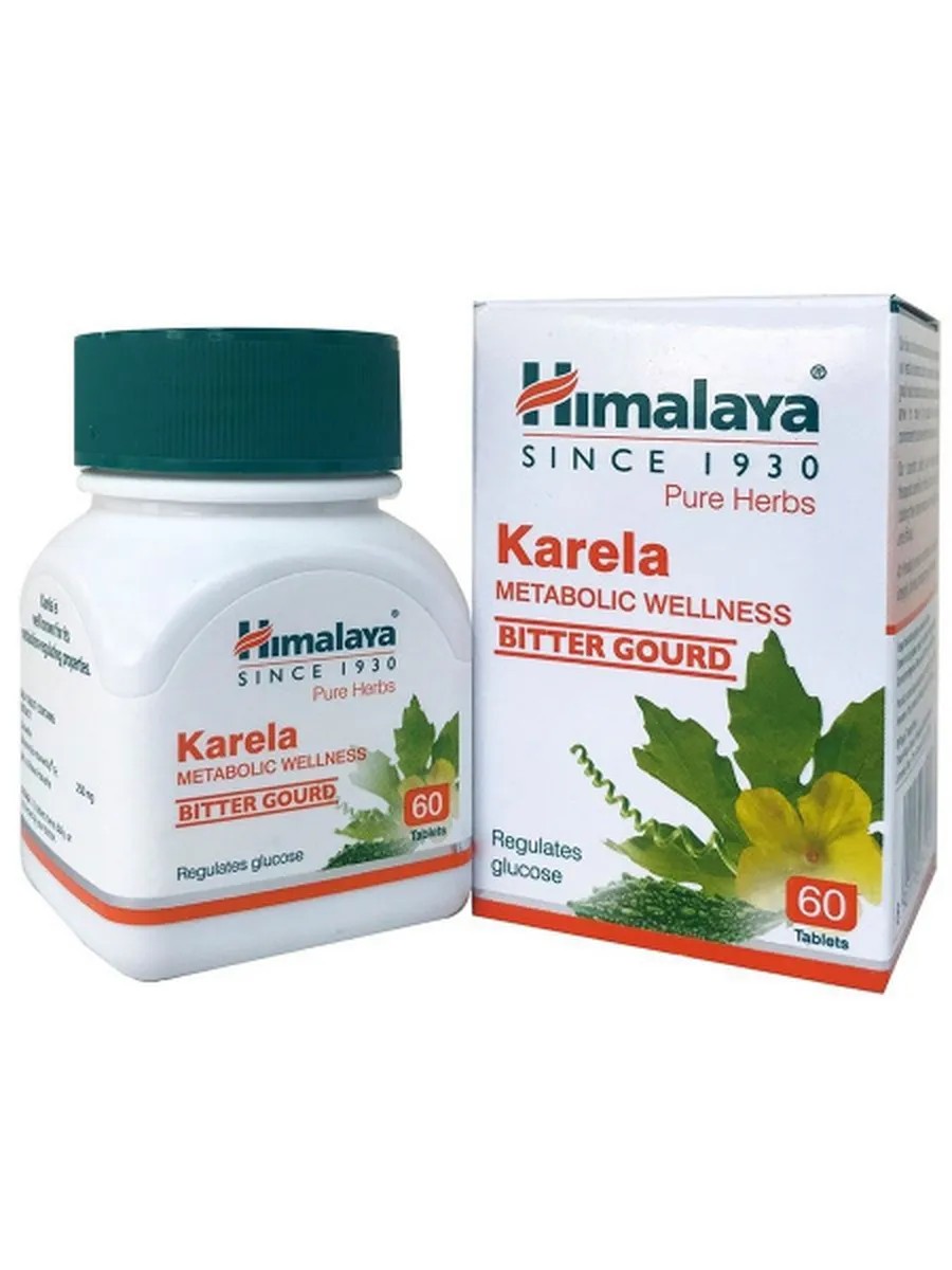 Натуральный растительный препаратКарелаKarela HIMALAYA или Горькая дыня регулирует уровень сахара в крови и моче. Карела активно используется в Индии. Очень богата железом, бета-каротином, кальцием, калием, витаминами С, В1, В2, В3, фосфором. Нормализует работу печени, содержит полипептиды схожие с инсулином, стимулирует выработку инсулина.