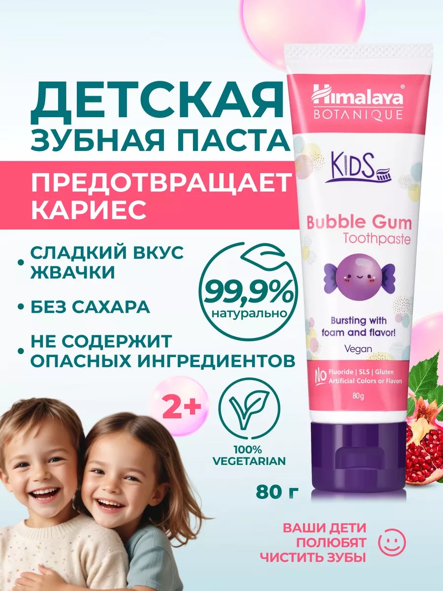 Himalaya Since 1930 Зубная паста для детей 2+ “Бабл Гам” без фтора, 80 г