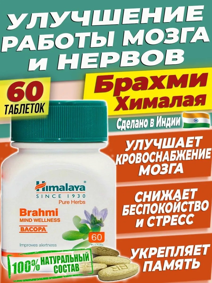 Брахми Хималая Для памяти Таблетки для мозга Brahmi -60 таб