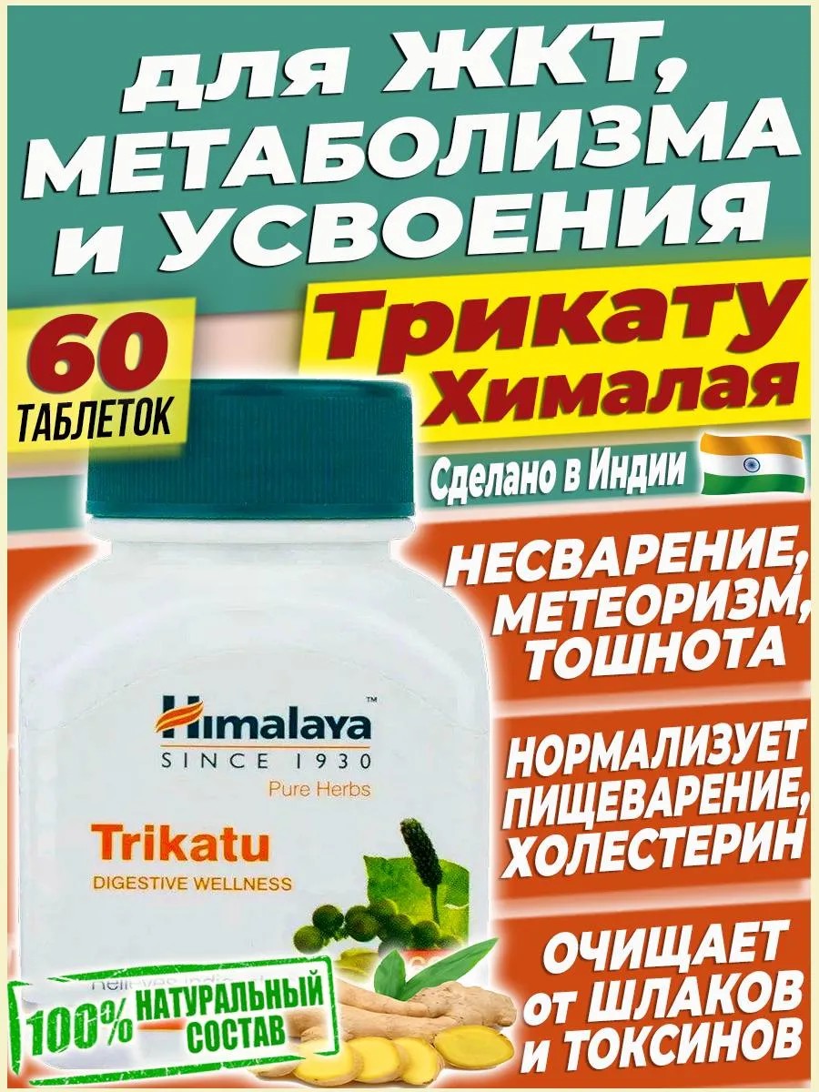 Хималая Индия Трикату Очищение ЖКТ Для пищеварения От холестерина - 60 таб