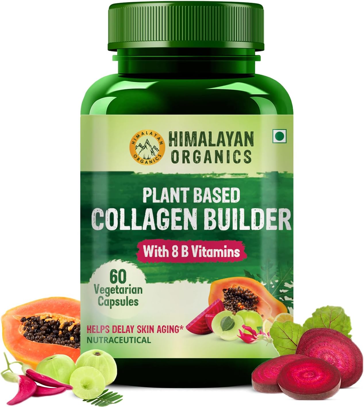 Boost collagen synthesis with Himalayan Organics Plant-based Collagen capsules, an all-healthy and natural formula. Your body needs to ensure a healthy balance of collagen as it is the structural protein found in the countless connective tissues in your body. In fact, it is the building block of your body. Made with the goodness of various ingredients like Sea buckthorn, Green Amla, Sesbania Grandiflora, Acai Berry, Spirulina, Green tea, Guava, Pomegranate, and more, these capsules assist in ensuring a healthy structure, promote glowing skin, strengthen bones, and promotes muscle health. Level up with 15X power!