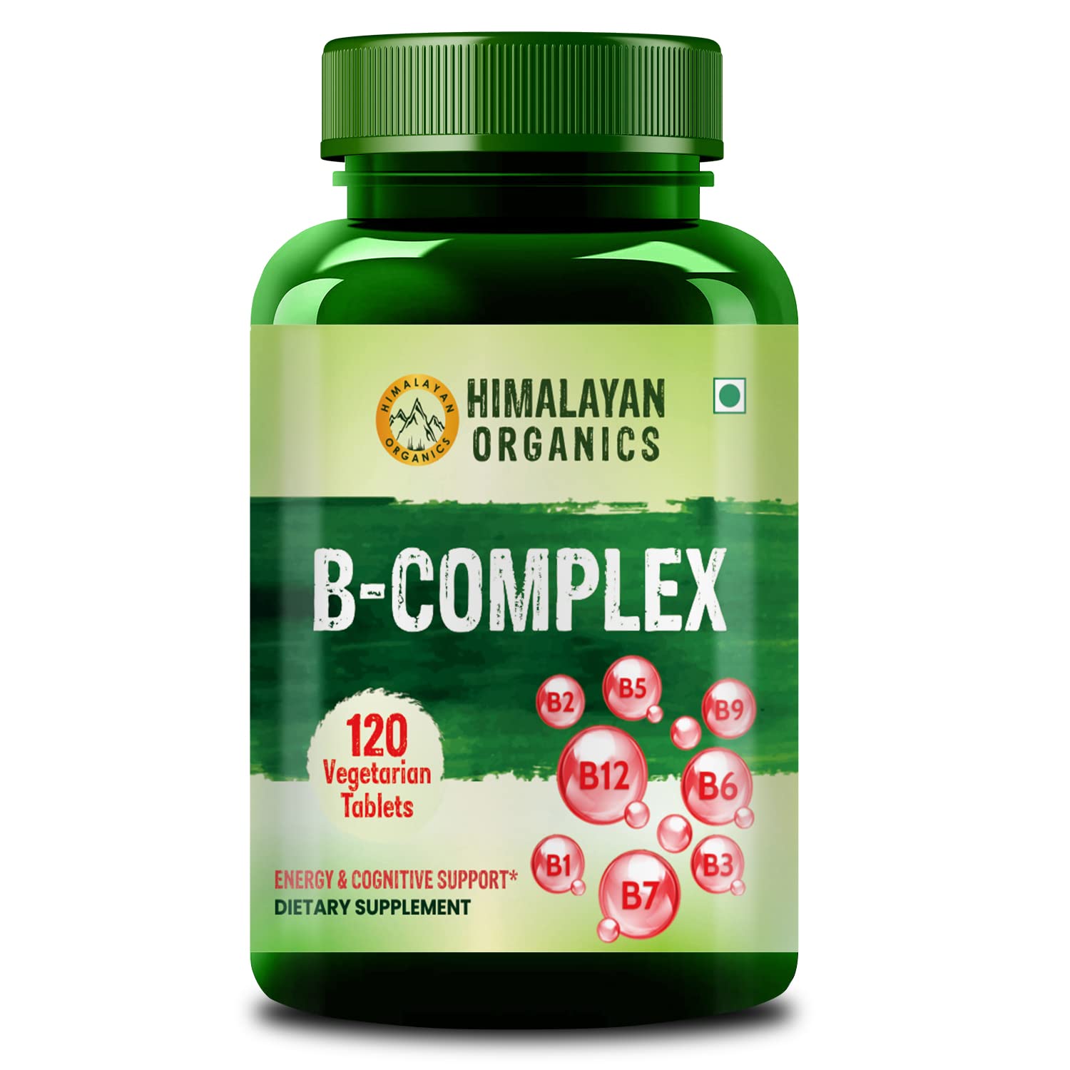 Himalayan Organics Vitamin B Complex with 100% RDA B1 B2 B3 B5 B6 B9 & B12 | 120 Veg Tablets