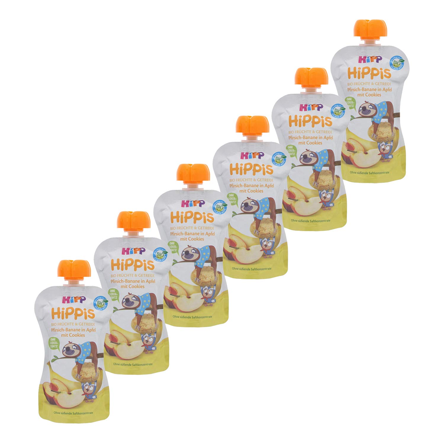 Hipp Hippis - This is how fruit enjoyment becomes the greatest fun: The popular hipp fruit squeezes in organic quality can do without sugar addition or sweeten juice concentrates.Also for older children.Fine pureed fruits, valuable wholesale cereals and other ingredients in organic quality are the ideal snack for in between and particularly practical for the go. Quetschwautel that not only taste good for the children, but are also really fun with the funny hippis animals. Ingredients / ingredients Ingredients: fruits* 94 %(apples* 42 %, peach* 8 %, bananas* 15 %), cookies* 6 %(wheat flour*, suss wheat powder*, butter*, wheat thickness*), antioxidant ascorbic acid.Note: Can contain traces of eggs and shell fruits.*Out of biological production Instructions ready for consumption Warnings Do not expose the direct sunlight Address manufacturer/importer D-85273 Pfaffenhofen More delivery: 6 x hipp hippis fruits and cereals squeezing bags, taste: peach banana in apple with cookies, composition: 94% fruits, 6% cookies, content: 6 x 100 g.Sustainable packaging: ecologically advantageous disposable packaging, light-protected storage-not subject to cooling, child-friendly design with funny hippis animals.Practical and comfortable: simple dosage and spoiler -free consumption directly from the bag or with a spoon through a small opening and light squeezing, comfortable opening and closing for later enjoyment thanks to the rotating lock, handy size.Best quality: 100% organic fruits in the fruit content with valuable organic cereals, natural sweetness without the addition of sugar or sweetening juice concentrates, strictly controlled ingredients.For on the go and the little hunger in between: delicious hippis with wholemeal croak in a 6 -pack in the flavor Peach banana in apple with cookies - for children from 1 year and young at heart of all ages. HiPP HiPPiS - so wird Fruchtgenuss zum allergrößten Spaß: die beliebten Hipp Fruchtquetschen in Bio-Qualität kommen ganz ohne Zuckerzusatz oder süßende Saftkonzentrate aus. Auch für ältere Kinder. Fein pürierte Früchte, wertvolles Vollkorngetreide und weitere Zutaten in Bio-Qualität sind der ideale Snack für zwischendurch und besonders praktisch für unterwegs.Quetschbeutel die den Kindern nicht nur schmecken, sondern mit den lustigen HiPPiS - Tieren auch richtig Spaß machen. INHALTSSTOFFE / ZUTATEN Zutaten: Früchte* 94 % (Äpfel* 42 %, Pfirsiche* 8 %, Bananen* 15 %), Kekse* 6 % (WEIZENMEHL*, SUSSMOLKENPULVER*, BUTTER*, WEIZENSTÄRKE*), Antioxidationsmittel Ascorbinsäure. Hinweis: Kann Spuren von EIERN und SCHALENFRÜCHTEN enthalten. *Aus biologischer Erzeugung GEBRAUCHSANWEISUNG verzehrfertig WARNHINWEISE Nicht dem direkten Sonnenlicht aussetzen ANSCHRIFT HERSTELLER/IMPORTEUR D-85273 PFAFFENHOFEN MehrLieferumfang: 6 x HiPP HiPPiS Früchte und Getreide Quetschbeutel, Geschmack: Pfirsich-Banane in Apfel mit Cookies, Zusammensetzung: 94% Früchte, 6% Kekse, Inhalt: 6 x 100 g. Nachhaltige Verpackung: Ökologisch vorteilhafte Einweg-Verpackung, Lichtgeschützte Aufbewahrung - Nicht Kühlpflichtig, Kindgerechtes Design mit lustigen HiPPiS-Tieren. Praktisch und bequem: Einfache Dosierung und kleckerfreier Verzehr direkt aus dem Beutel oder mit Löffel durch kleine Öffnung und leichtes Quetschen, Bequemes Öffnen und Schließen für späteren Genuss dank Drehverschluss, Handliche Größe. Beste Qualität: 100% Bio-Früchte im Fruchtanteil mit wertvollem Bio-Getreide, Natürliche Süße ohne Zusatz von Zucker oder süßenden Saftkonzentraten, Streng kontrollierte Zutaten. Für unterwegs und den kleinen Hunger zwischendurch: Leckere HiPPiS mit Vollkorn Quetschies im 6er Pack in der Geschmacksrichtung Pfirsich-Banane in Apfel mit Cookies - Für Kinder ab 1 Jahr und Junggebliebene jeden Alters.HiPP HiPPiS Früchte und Getreide Quetschbeutel, Pfirsich-Banane in Apfel mit Cookies, 100% Bio-Früchte und Getreide, Ohne Zuckerzusatz, 6 x 100 g Beutel Da47000 Pfirs.-ban./Cookie 100g 100 g (6er Pack) Pfirs.-Ban./Cookie