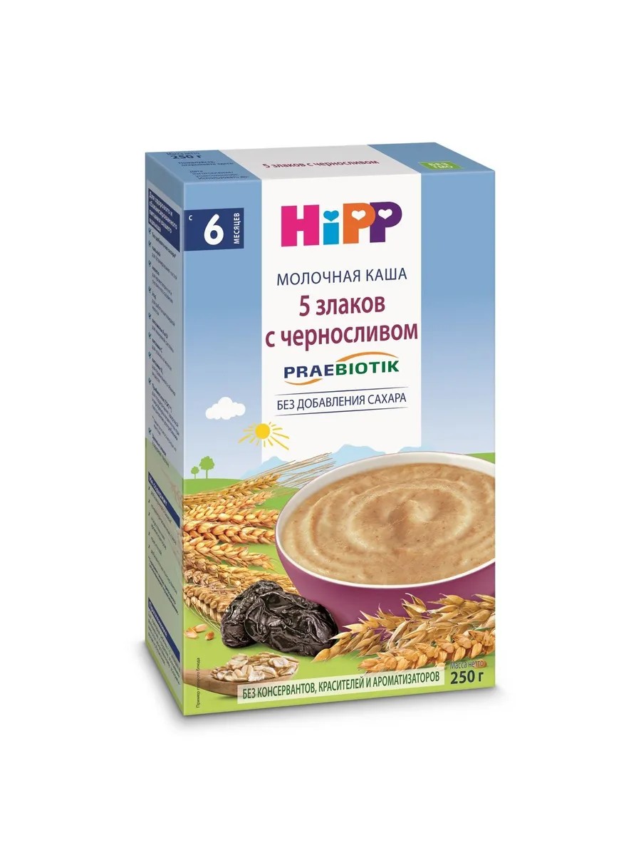 Молочная каша HiPP с пребиотиками «5 злаков с черносливом» для детей с 6 месяцев. Злаки являются неотъемлемой частью рациона питания малыша, они обеспечивают ребенка необходимой энергией, служат источником растительного белка, клетчатки, витаминов и минеральных веществ. Каша на основе обезжиренного молока обладает питательной ценностью, полностью удовлетворяющей потребностям малыша. В состав каши «5 злаков с черносливом» входят пребиотики (галактоолигосахариды из лактозы), которые поддерживают здоровую микрофлору кишечника. Ценные злаки легко усваиваются и помогают улучшить пищеварение. Молочная каша с фруктами откроет для малыша новое сочетание вкусов и разнообразит меню. Многолетний опыт, использование новейших технологий, постоянный контроль процесса производства гарантируют высокое качество HiPP.